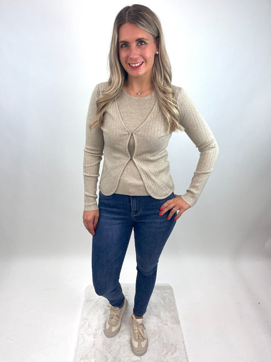 2 in 1 Set Cardigan + Top beige, Gr. 34-40