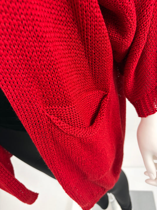 Strickpullover in Grau mit Schalkragen und Taschen , Gr. 36-42