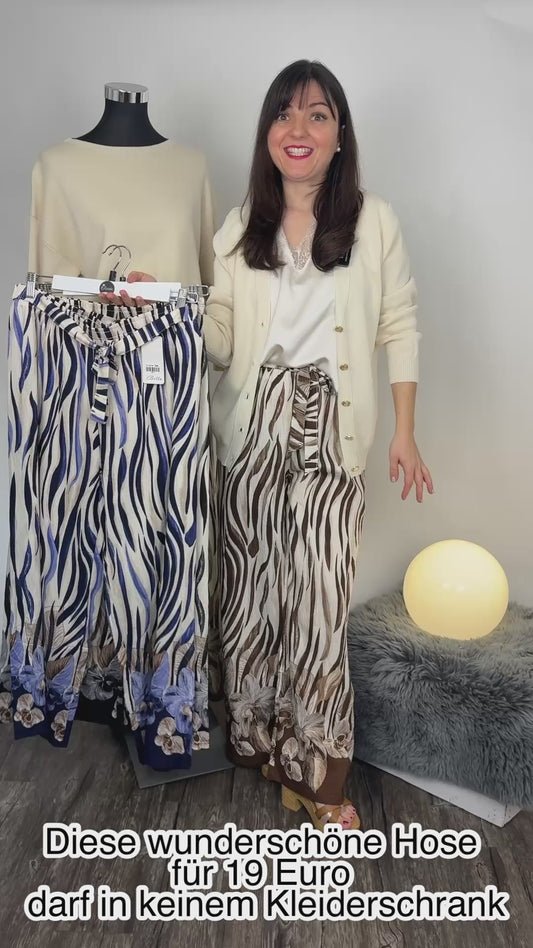 Sommerhose mit Orchideen-Streifen-Print braun, Gr. 36-46