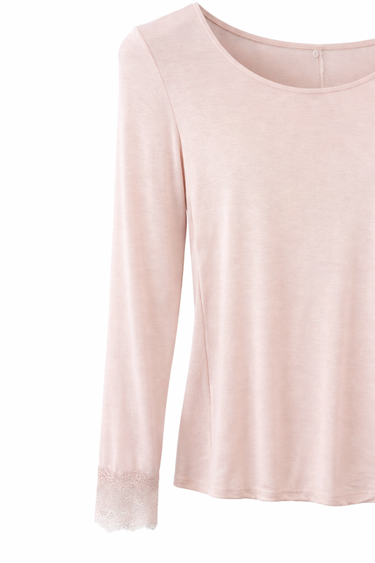 Elegantes Langarmshirt mit Spitzen-Details rosa Gr. 36-40