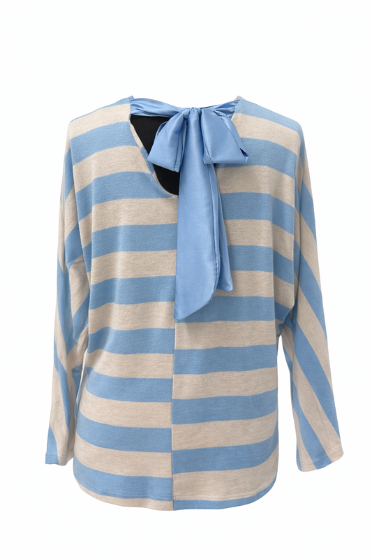 Gestreifter Damen Pullover mit V-Ausschnitt & Schleifendetail, Größe 36-42