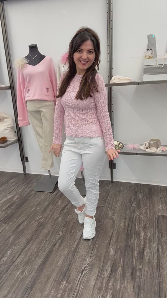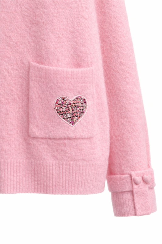 Pullover Damen rosa mit Tweed Herzchen , Gr. 36-42