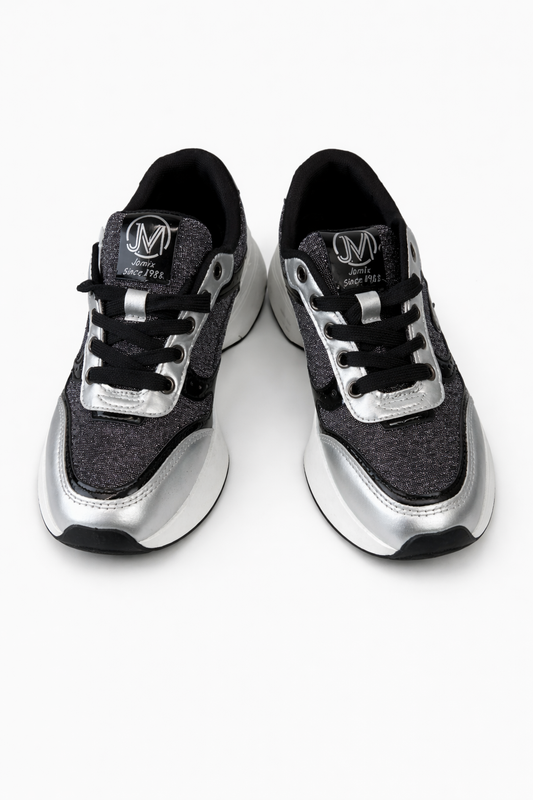 Trendige Sneaker mit Keilsohle – Silber/Schwarz