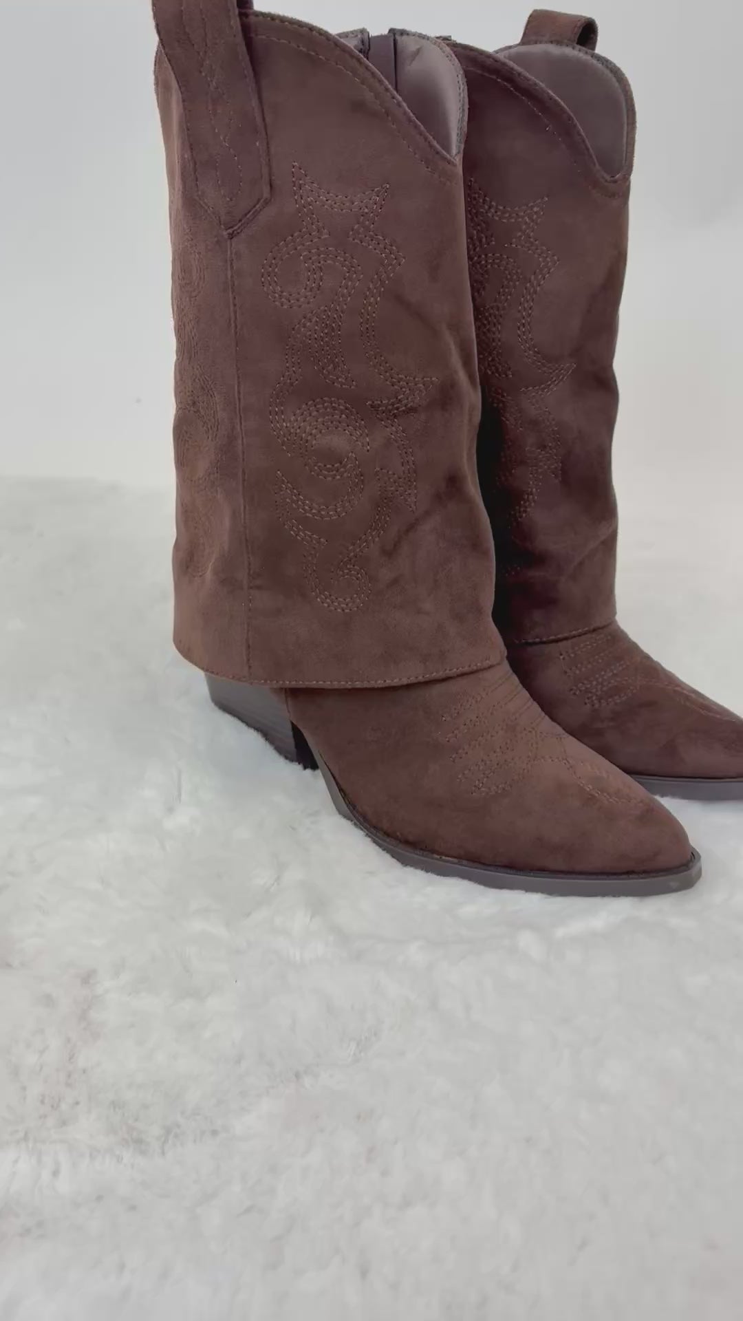Diese modischen Cowboy-Boots bringen Western-Feeling in jedes Outfit! Mit ihrer hochwertigen Wildlederoptik, den typischen Ziernähten und dem klassischen Westernabsatz sind sie ein absolutes Must-have für trendbewusste Looks. Die dunkelbraune Farbe lässt sich vielseitig kombinieren und verleiht deinem Style eine warme, edle Note.