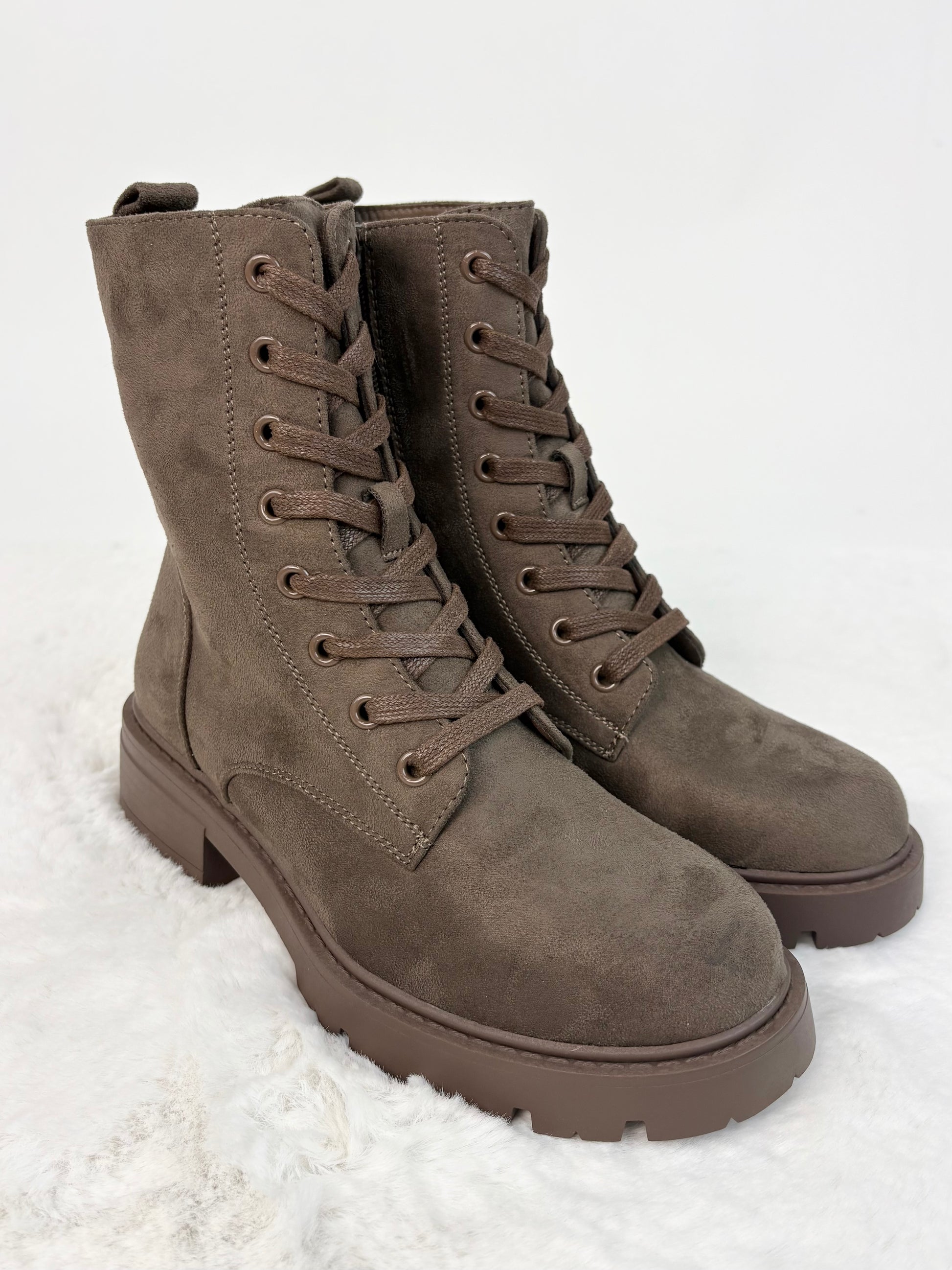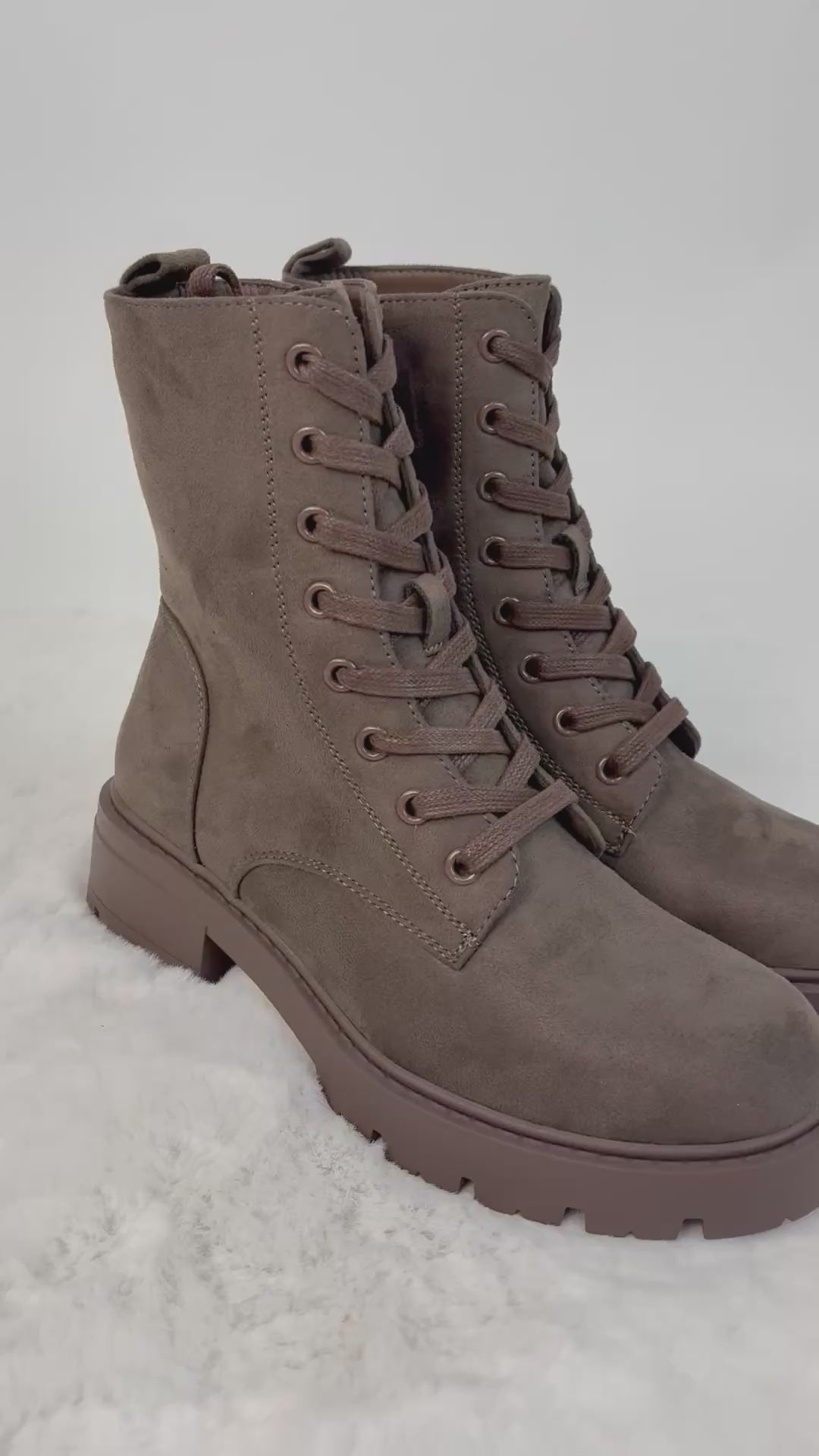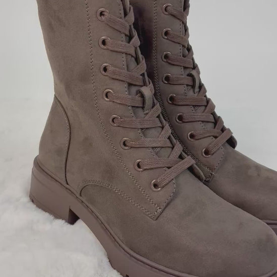 Dieser Schnür-Boot in einem warmen Braun-Ton ist der perfekte Alltagsbegleiter für Herbst und Winter. Das weiche Obermaterial in Veloursoptik verleiht dem Schuh eine hochwertige, moderne Ausstrahlung, während die stabile Profilsohle für guten Halt sorgt. Dank der Kombination aus Schnürung und praktischem Seitenzipper lässt sich der Boot leicht an- und ausziehen und gleichzeitig perfekt an den Fuß anpassen. Die dekorativen Nähte und der blockige Absatz runden das Design stilvoll ab. Innen gefüttert.