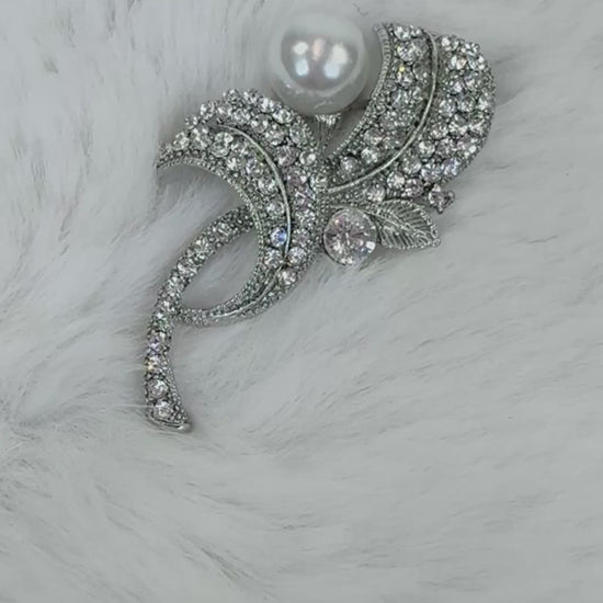 Diese edle Strass-Brosche ist ein wahrer Blickfang für jedes Outfit. Das kunstvolle Design in geschwungener Blattform wird durch funkelnde, klar gefasste Strasssteine veredelt und mit einer edlen Perle abgerundet. Ein Hauch von Glamour und zeitloser Eleganz für besondere Anlässe oder als stilvolles Accessoire im Alltag.