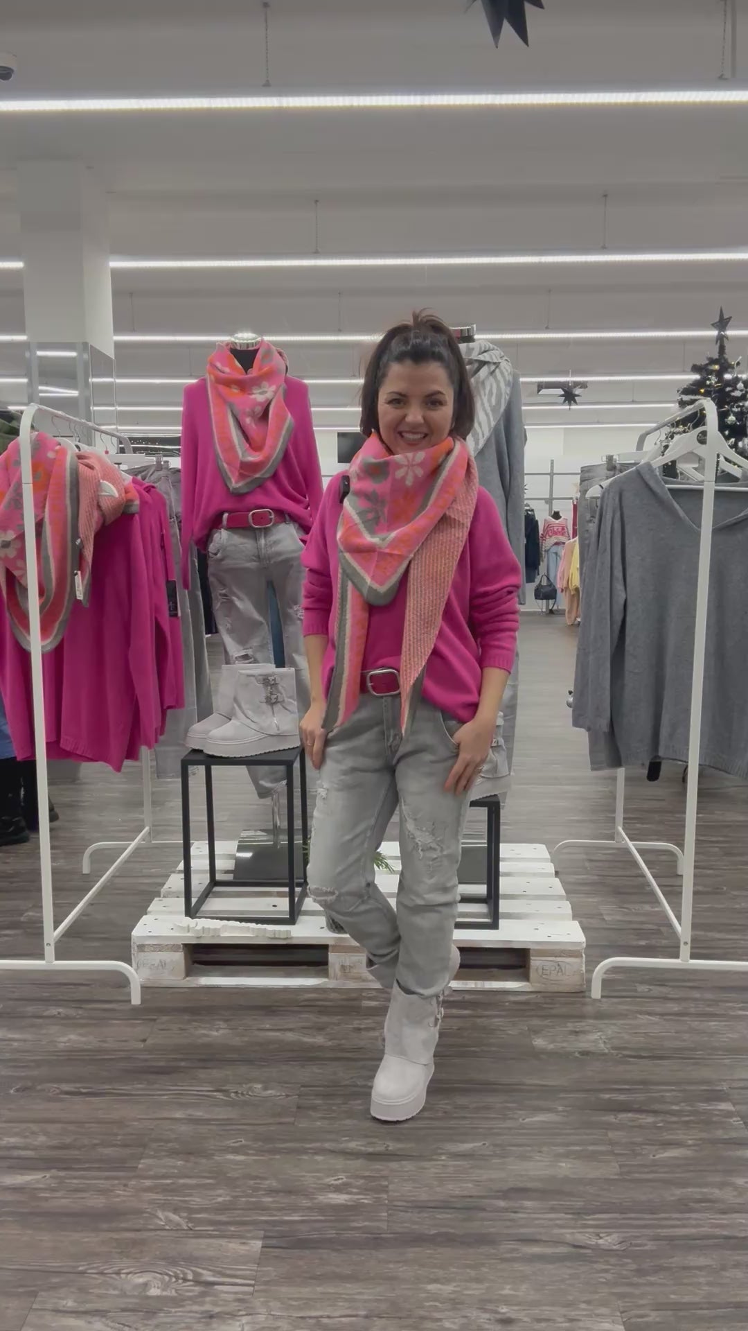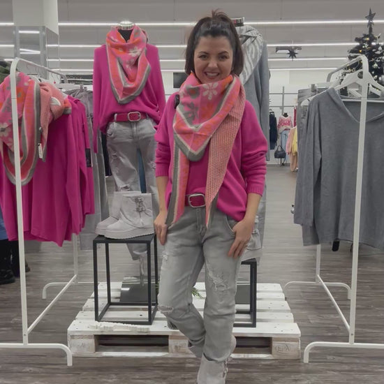 Dieser farbenfrohe Schal in kräftigem Fuchsia bringt sofort gute Laune in jedes Outfit. Das verspielte Blumenmuster verleiht dem Accessoire eine feminine, frische Ausstrahlung, während die kontrastierenden Ränder dem Design mehr Tiefe und einen modischen Rahmen geben. Der Schal besteht aus angenehm leichter Viskose, fällt weich und lässt sich wunderbar vielseitig stylen – egal ob locker gebunden, lässig geschlungen oder über die Schultern gelegt.