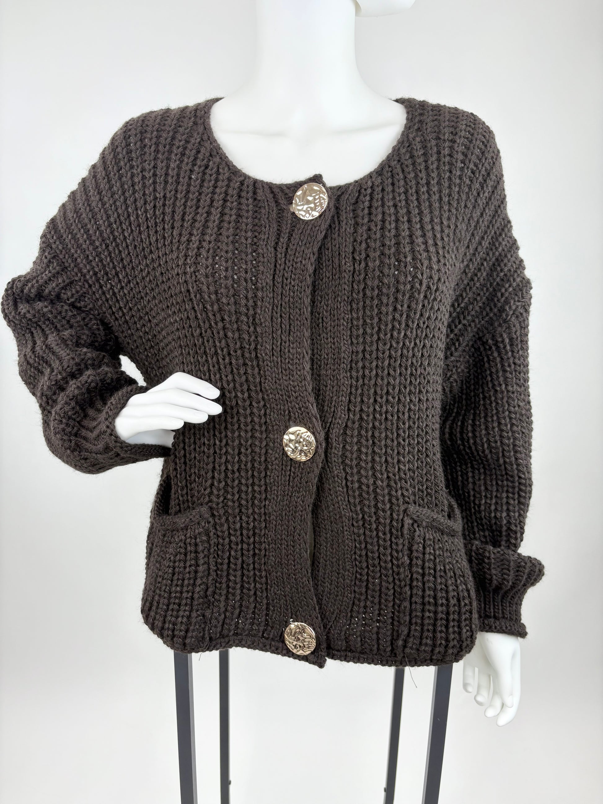 Strickcardigan braun mit goldenen Knöpfen, Gr. 36-44