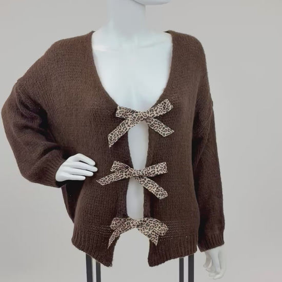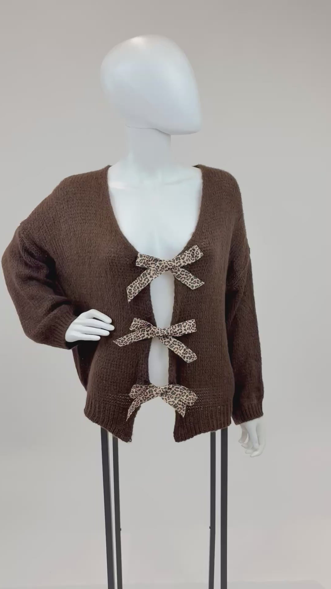 Cardigan Leo-Schleifen schokobraun, Gr. 36-44