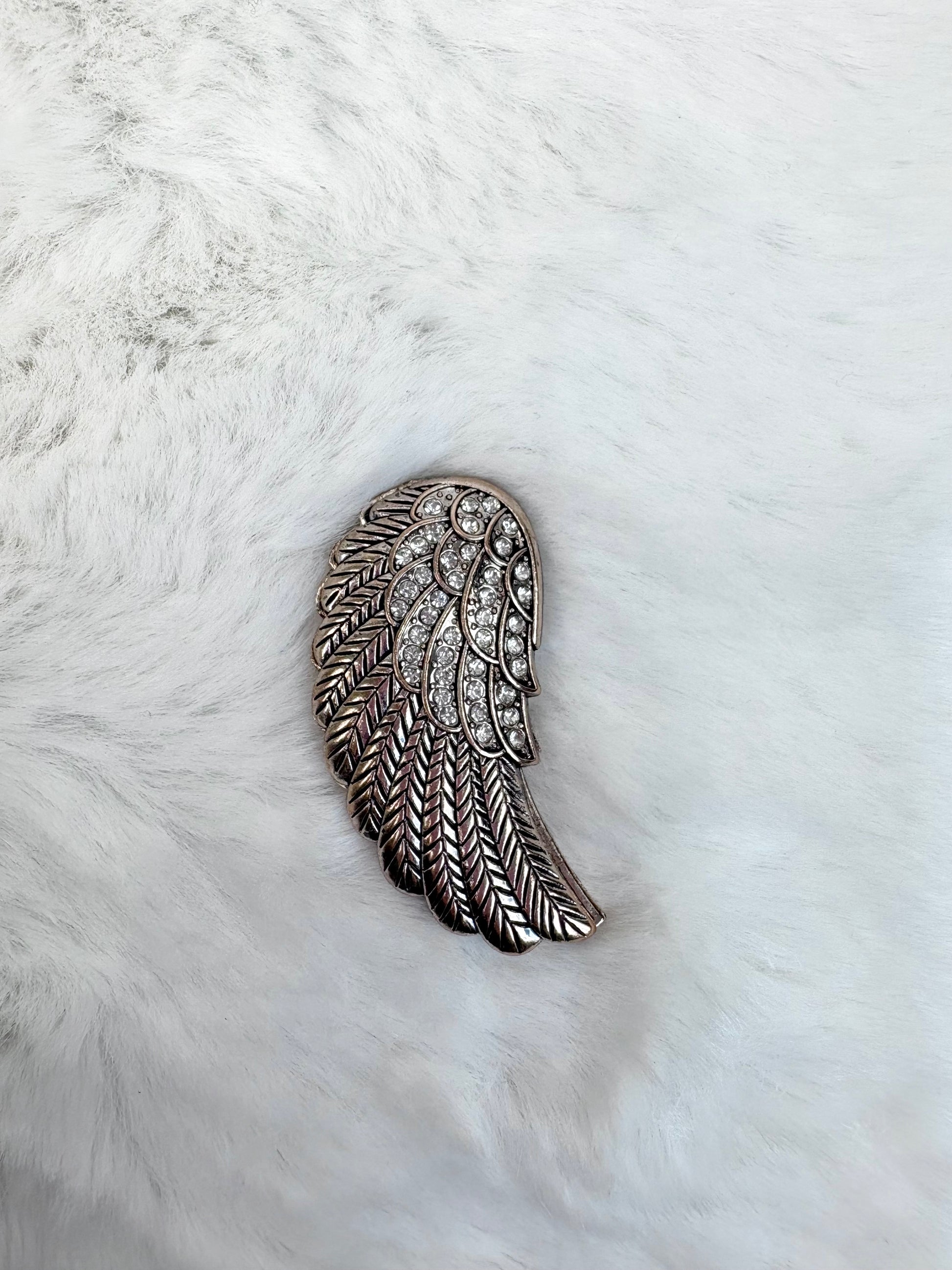 Diese wunderschöne Flügel-Brosche verleiht jedem Outfit einen Hauch von Eleganz und Symbolkraft. Gefertigt im roségoldenen Design und verziert mit funkelnden Strasssteinen, ist sie ein echter Blickfang. Das Besondere: Die Brosche wird mit einem Magnetverschluss befestigt - ganz ohne Nadel oder Löcher im Stoff.