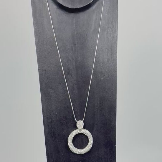 Diese stilvolle Halskette ist ein absoluter Blickfang! Der große, runde Anhänger ist vollständig mit funkelnden Strasssteinen besetzt und sorgt für einen glamourösen Glitzereffekt, der jedes Outfit sofort aufwertet. Der dekorative Verbindungsring verleiht dem Design eine zusätzliche edle Note – perfekt für alle, die moderne Eleganz lieben.