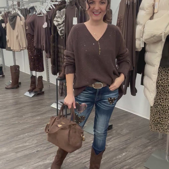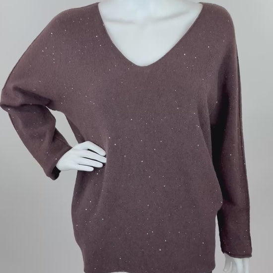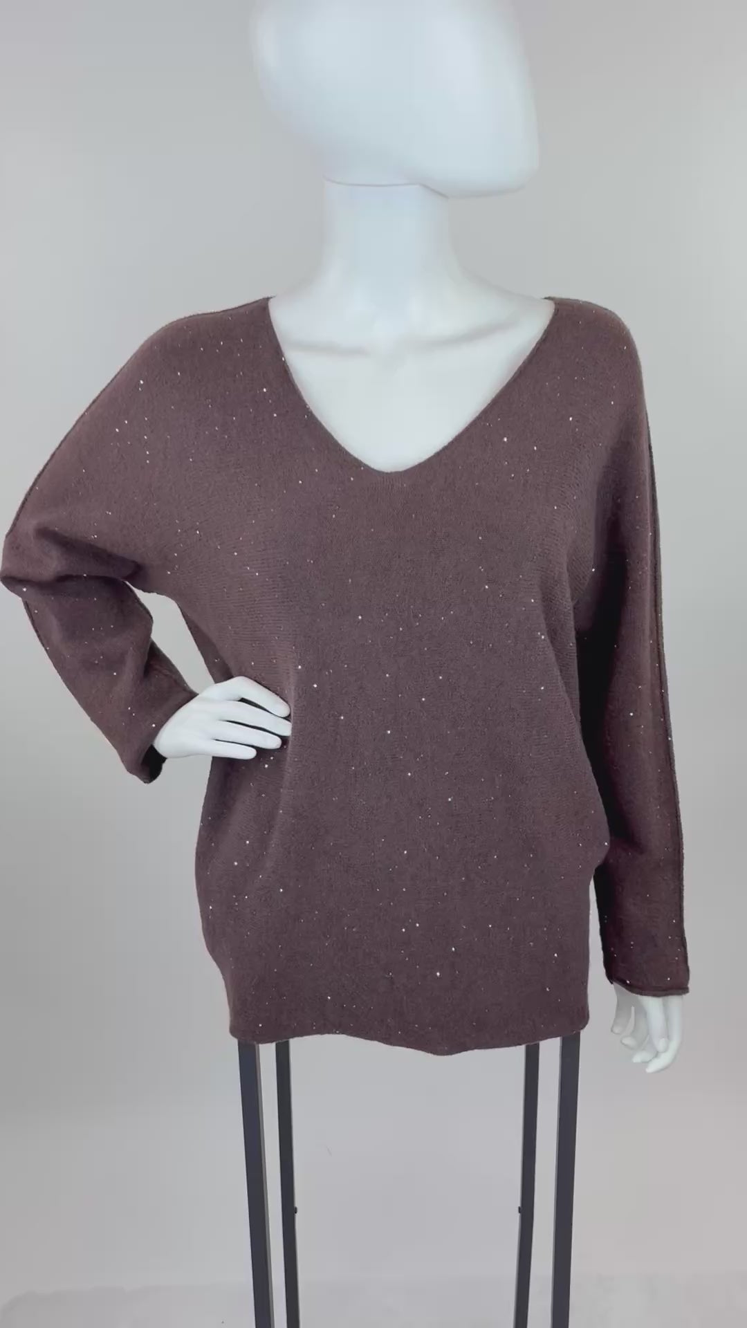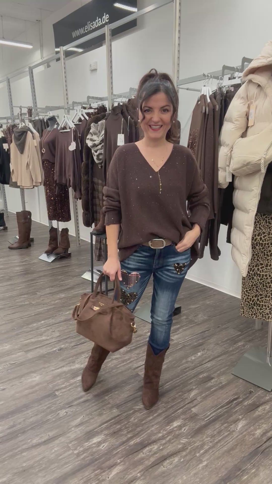 Glitzerpullover dunkelbraun, Gr. 36-44