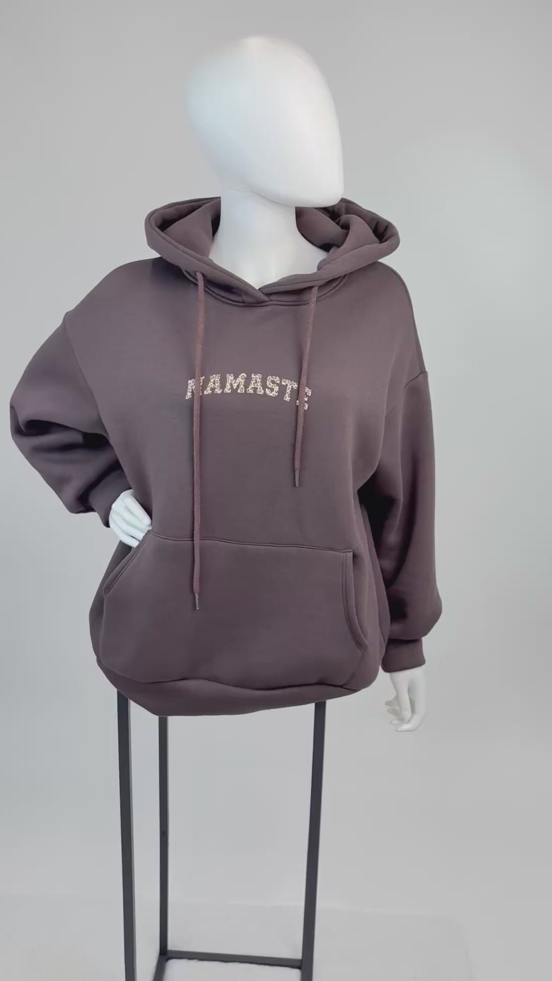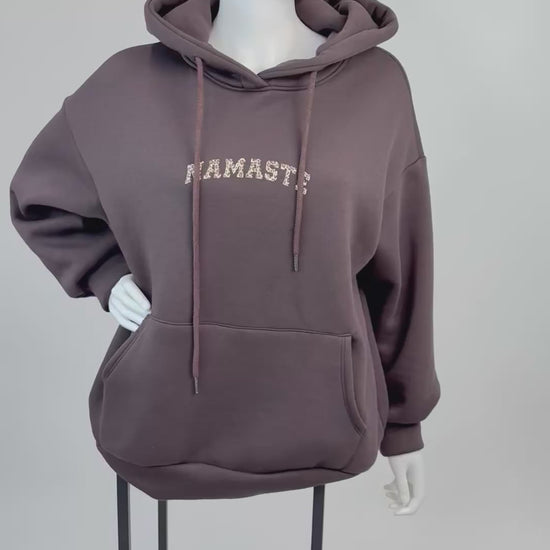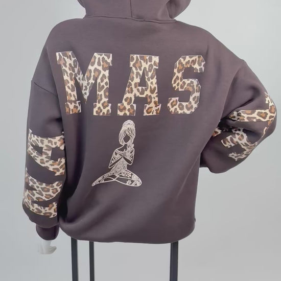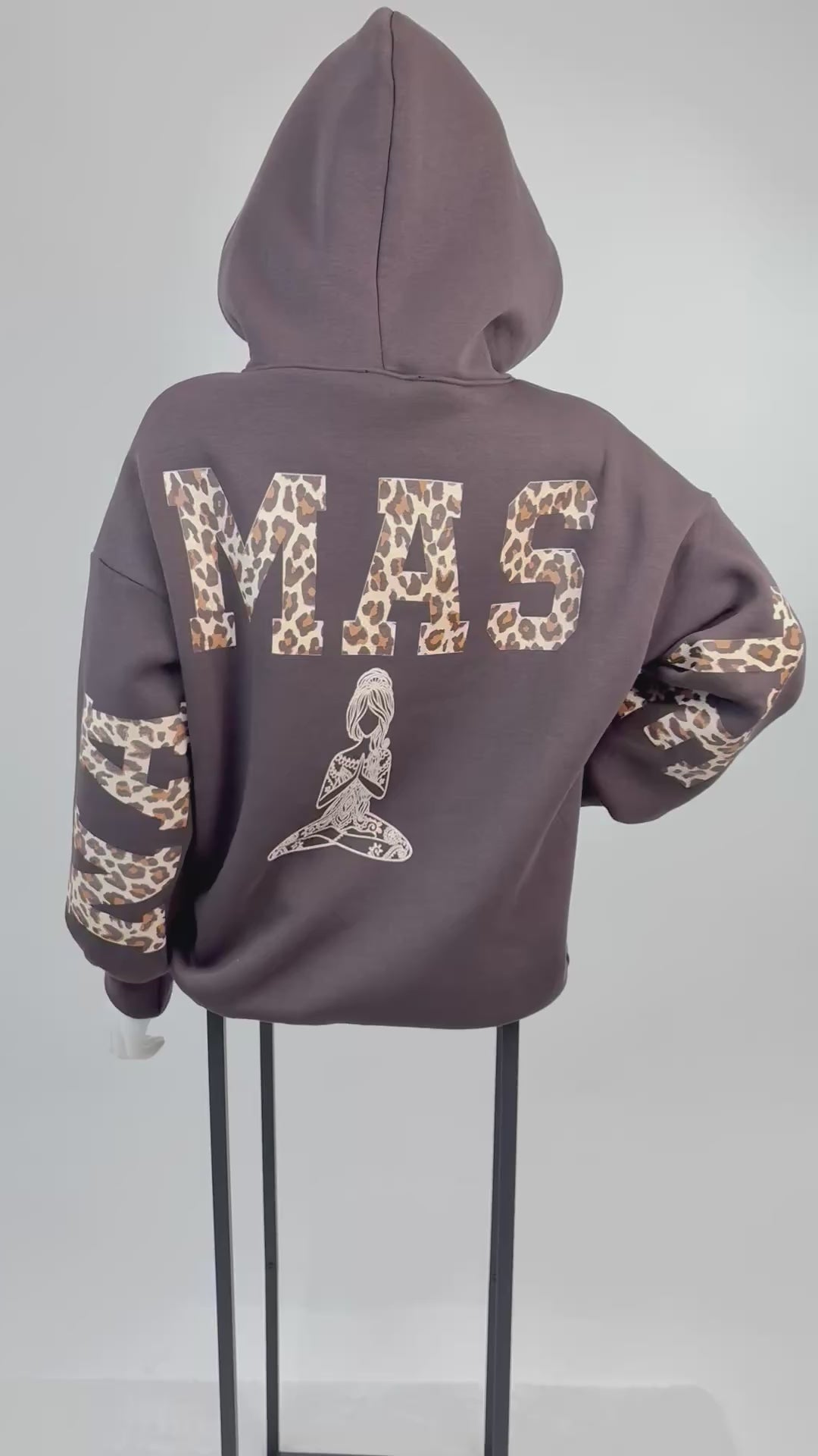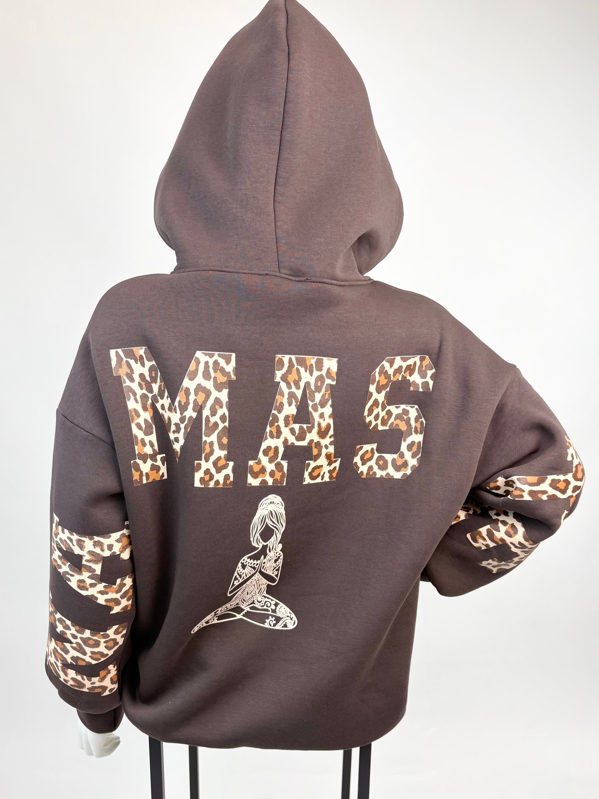 Oversized Hoodie „Namaste“ – Braun mit Leo-Print Gr. 38-44