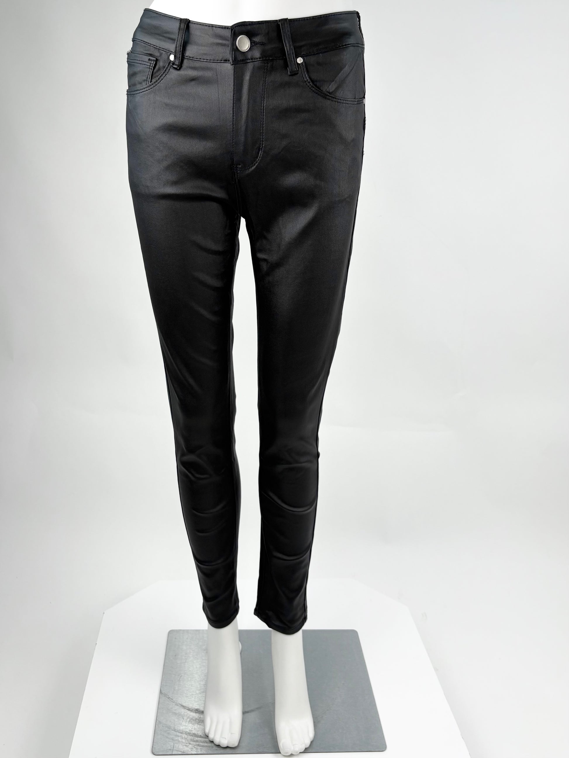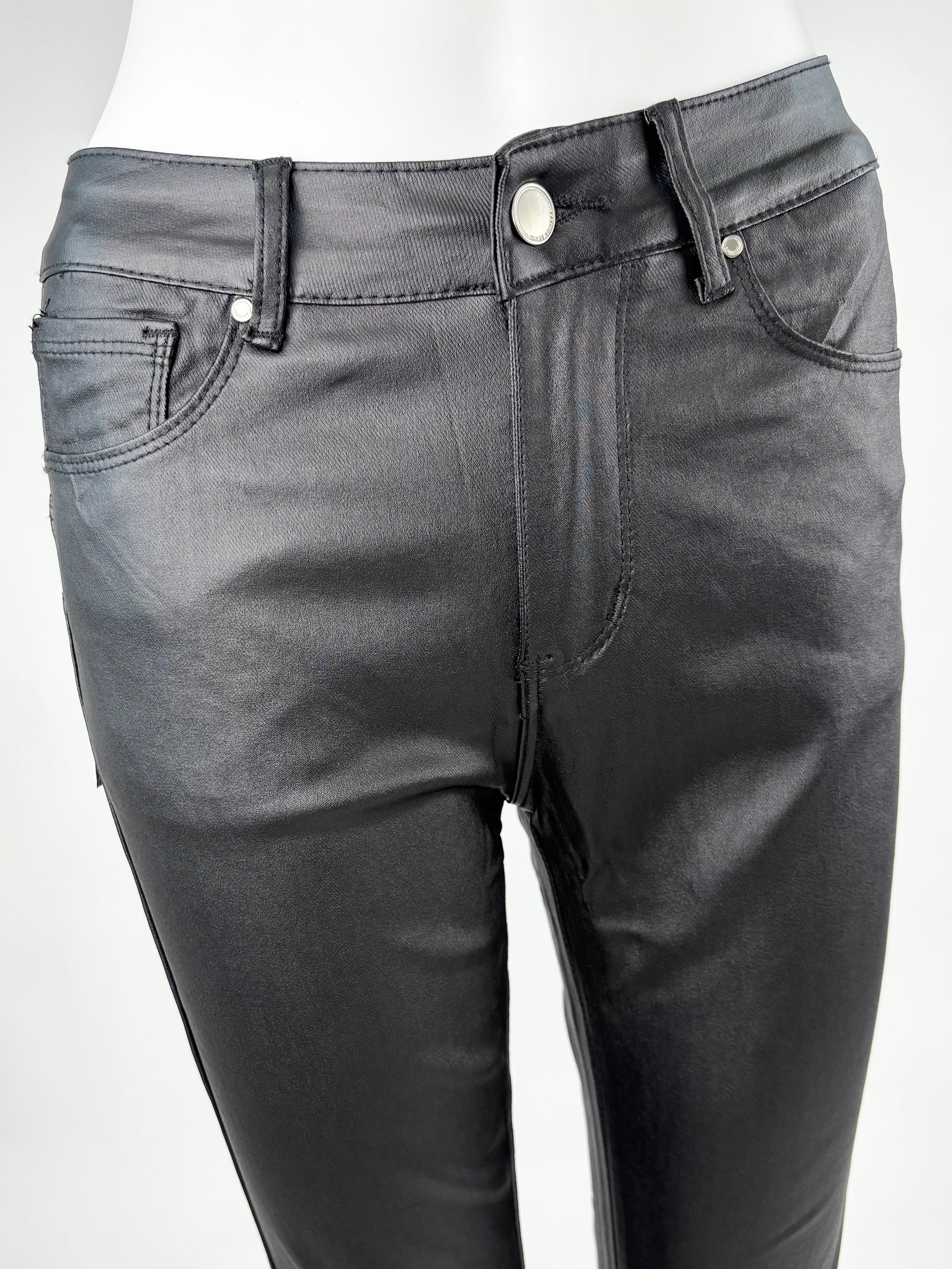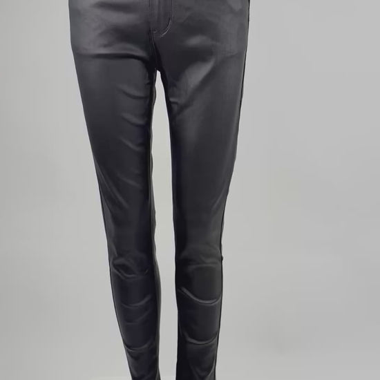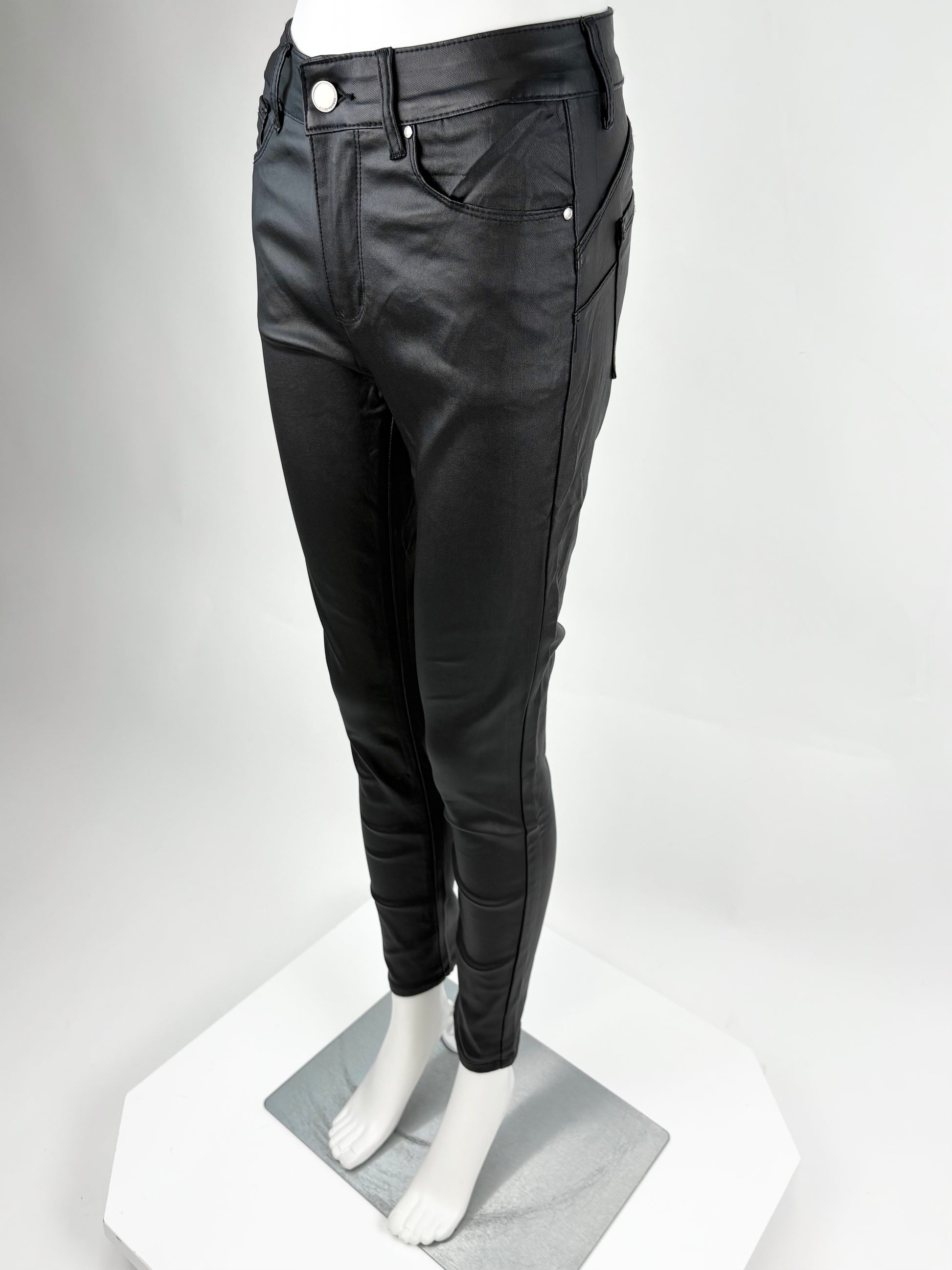 Diese schwarze Push-Up-Hose in Lederoptik ist ein echtes Fashion-Statement. Der figurbetonte Schnitt und der Push-Up-Effekt betonen deine Kurven und sorgen für eine schmeichelhafte Silhouette. Perfekt für trendige Outfits – ob tagsüber oder am Abend.