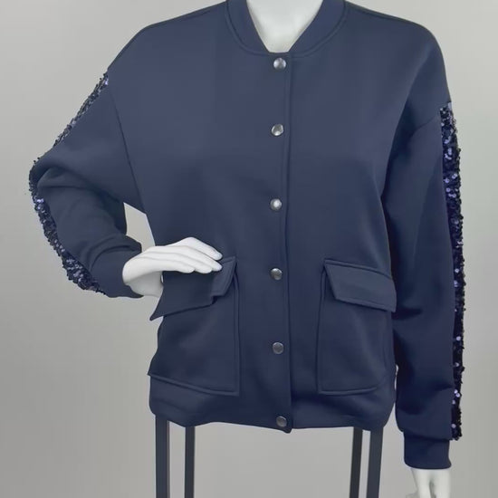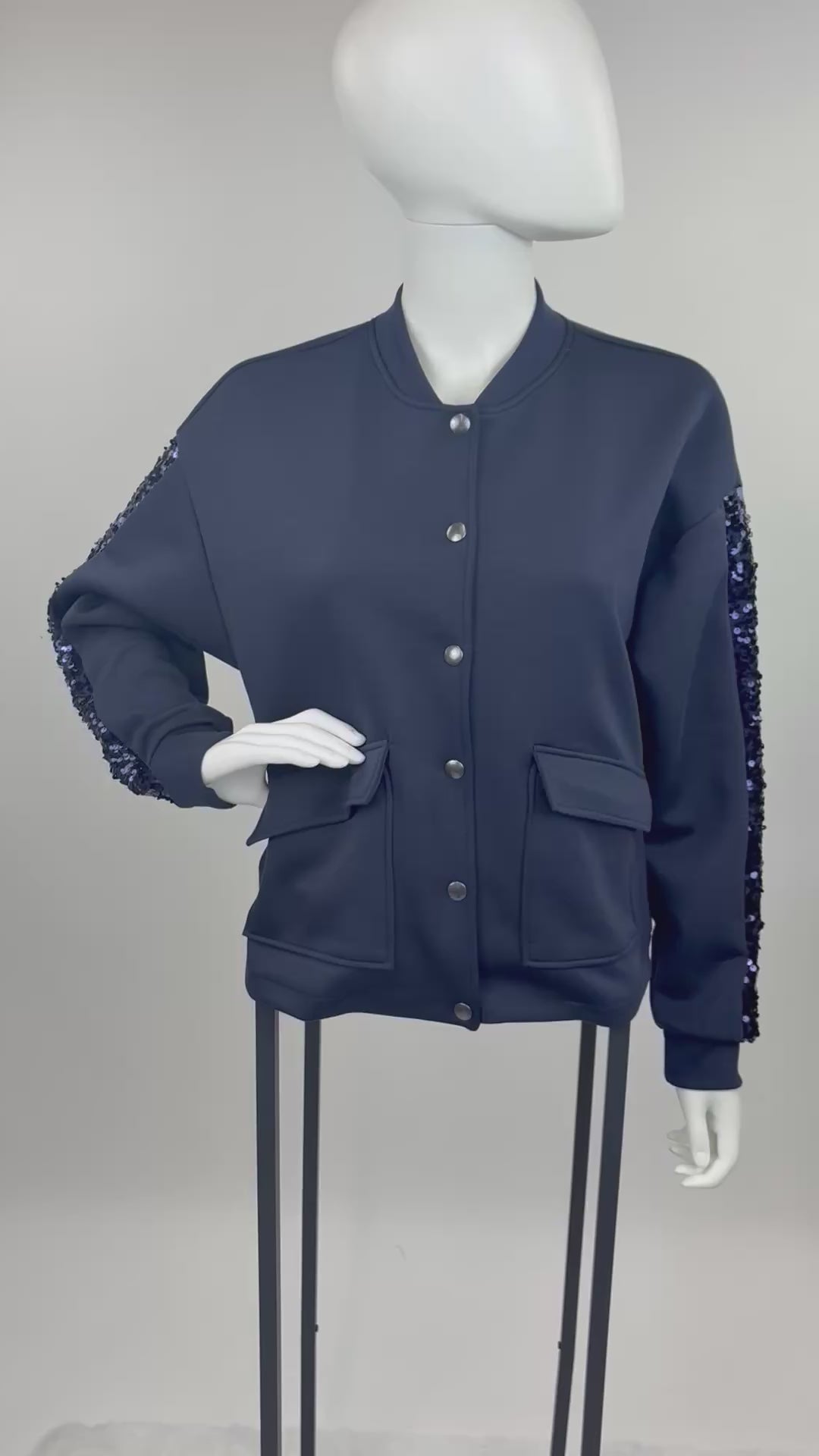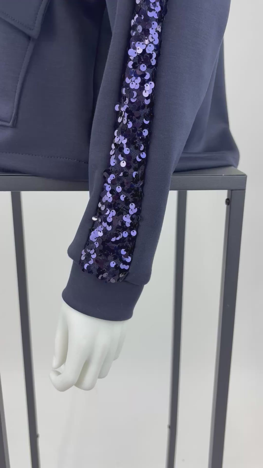 Sweatjacke mit Paillettenärmeln, Gr. 36-42