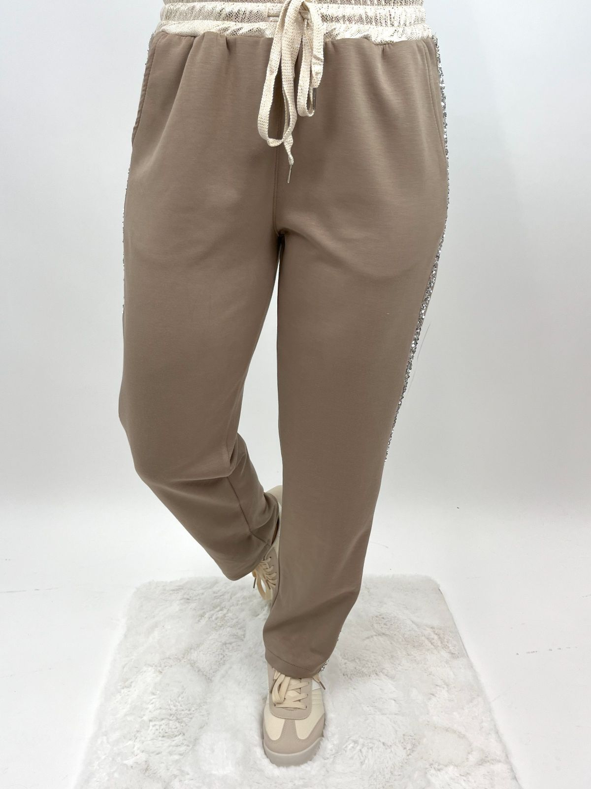 Joggerpants taupe mit Paillettenstreifen , Gr. 36-42