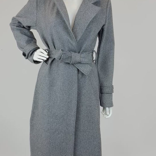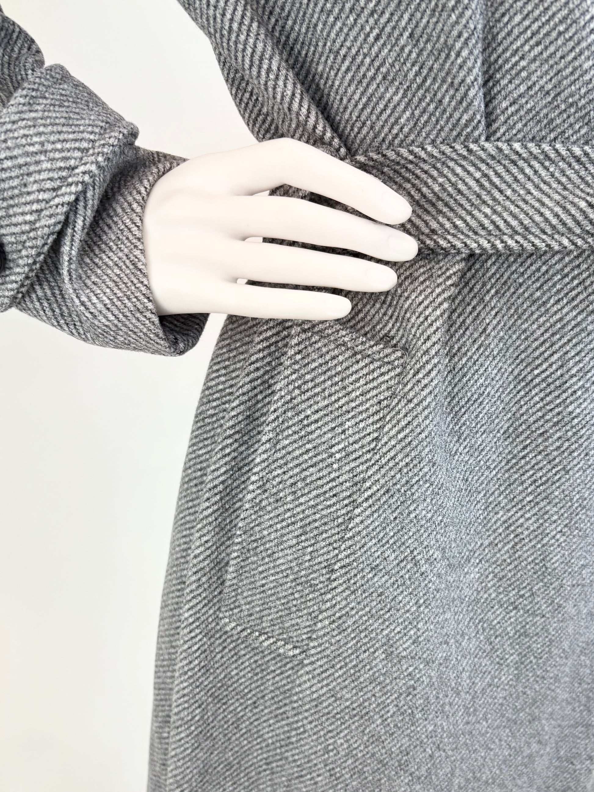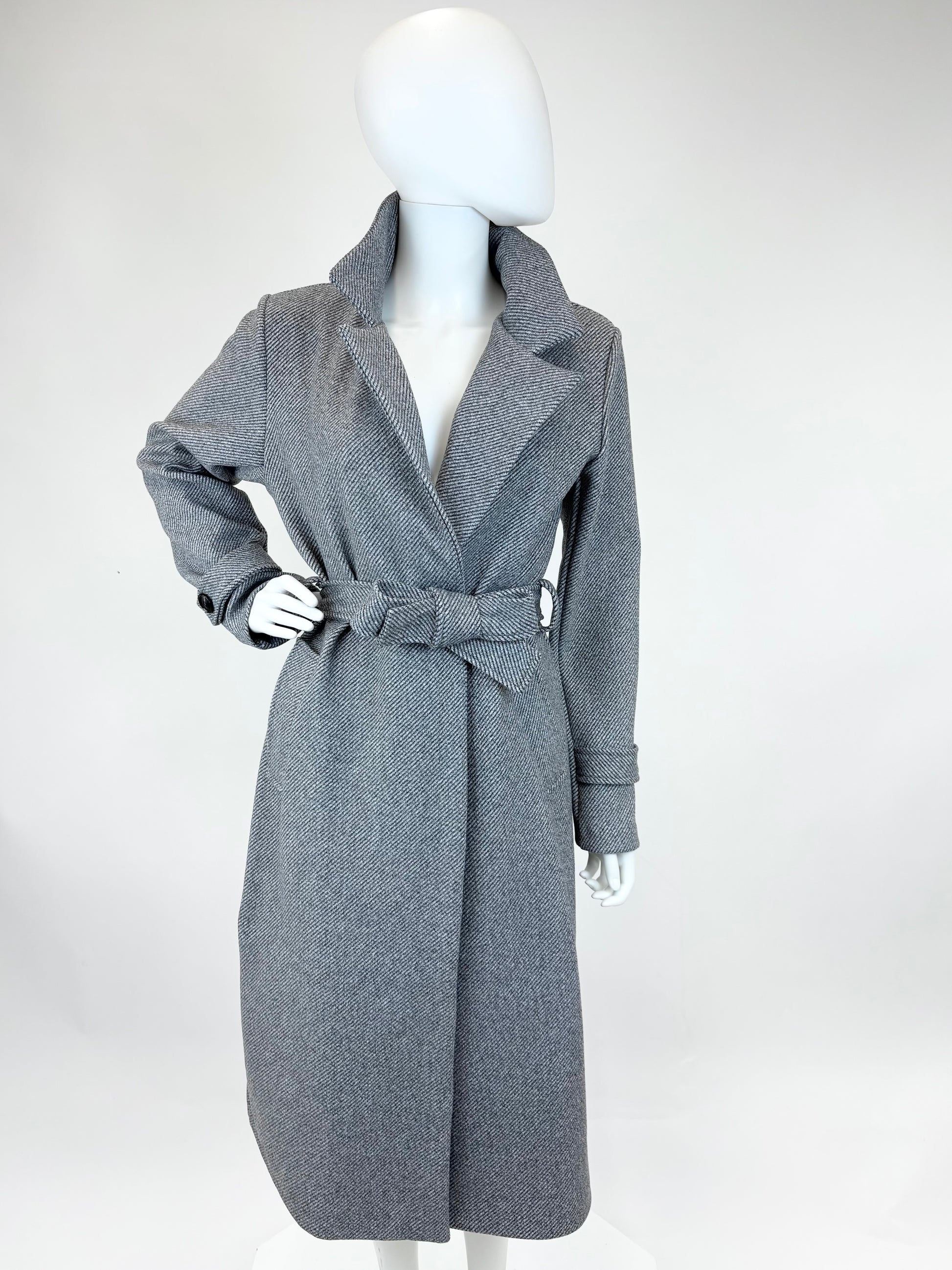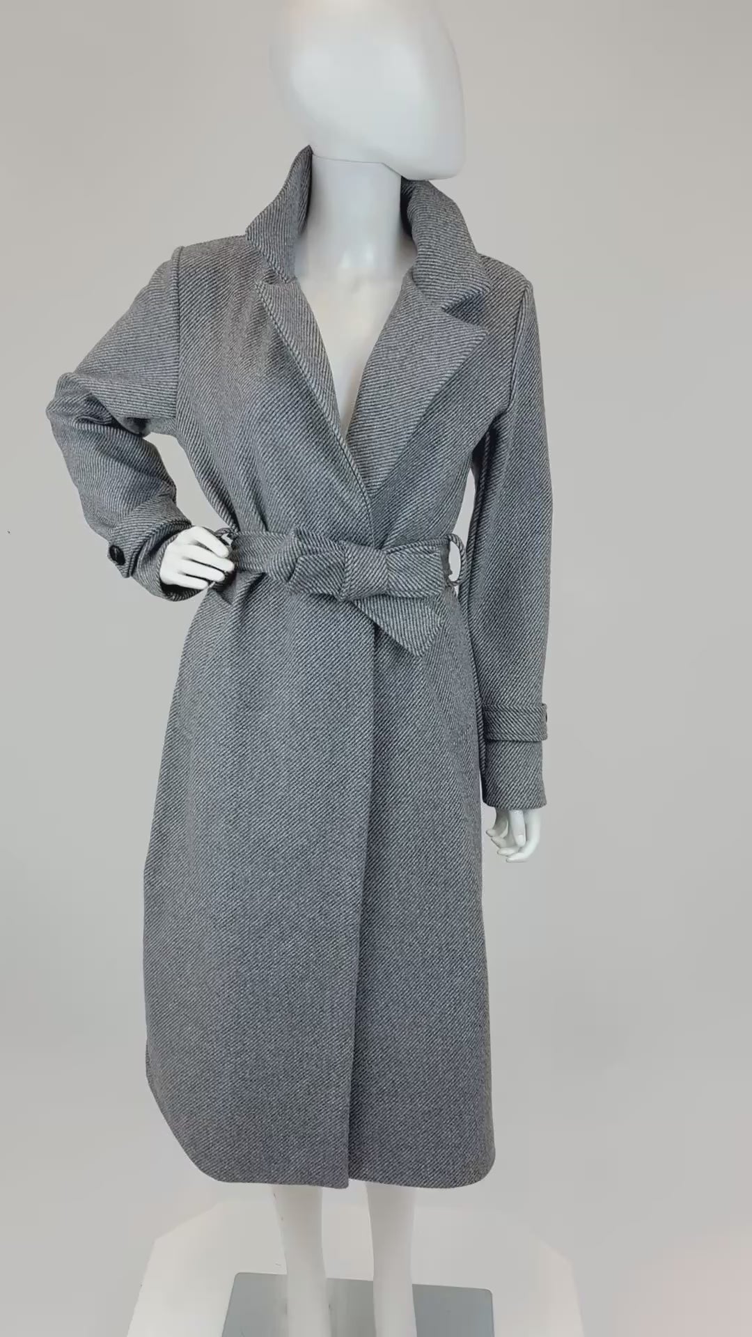 Dieser stilvolle Mantel in klassischem Grau vereint zeitlose Eleganz mit modernem Chic. Der feine Stoff verleiht dem Mantel eine edle Struktur, während der taillierte Schnitt und der abnehmbare Bindegürtel die feminine Silhouette perfekt betonen.