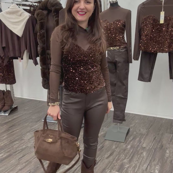 Mesh-Oberteil mit Pailletten-Corsagen-Optik braun, Gr. 34-40