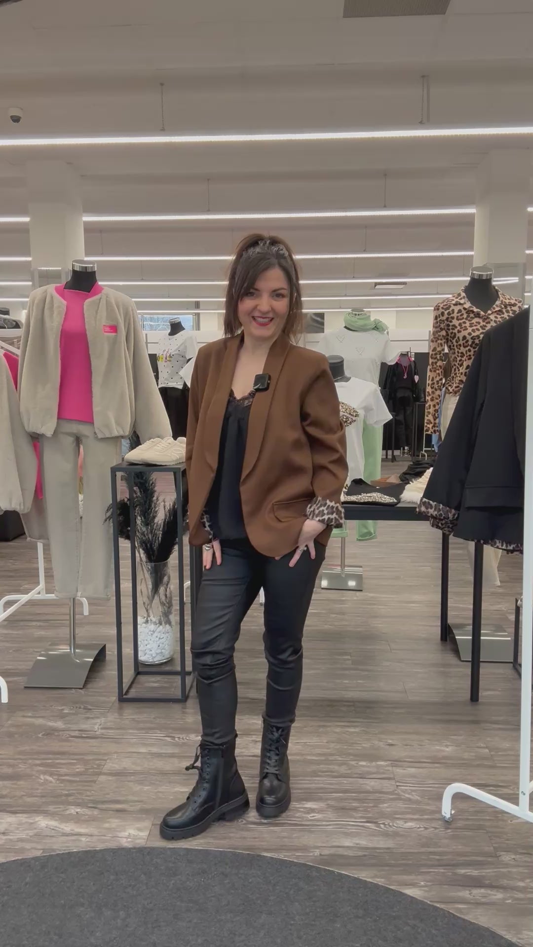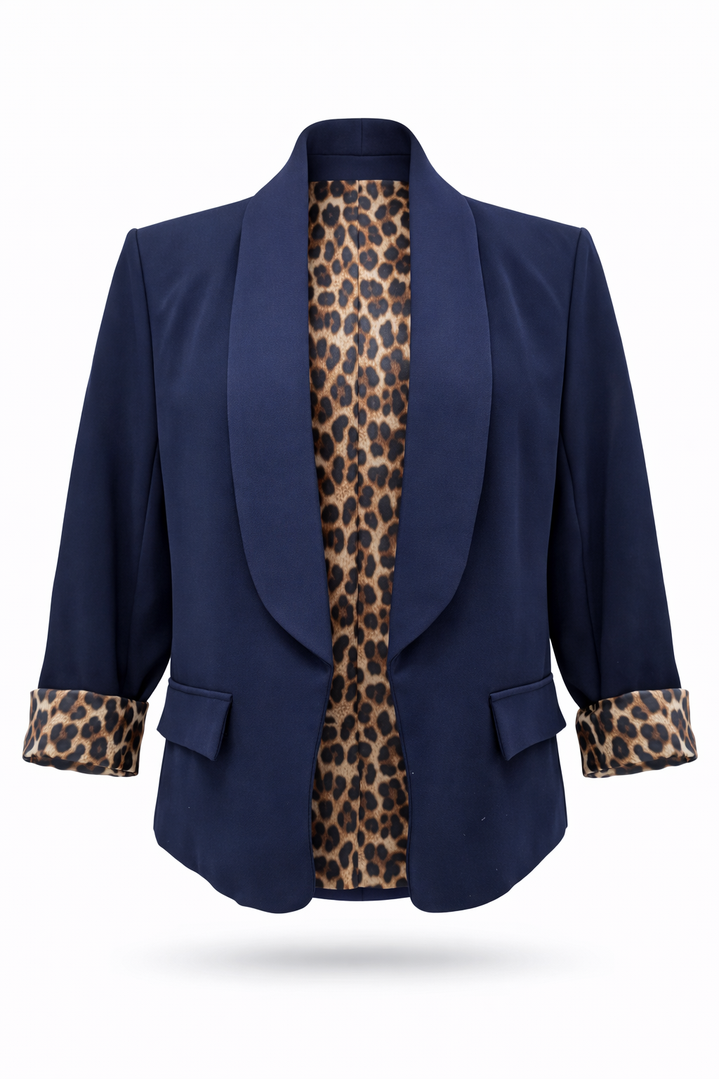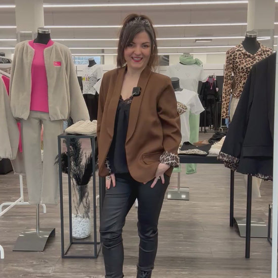 Besonders wandelbar zeigt sich das Modell durch die Ärmel: Je nach Styling lassen sie sich umschlagen, um das Leo-Futter sichtbar zu machen, oder glatt tragen für einen ruhigen, einfarbigen Look. Ob lässig zu Jeans, modern mit Stoffhose oder stilvoll über Kleidern – dieser Blazer begleitet souverän durch Alltag, City und elegante Anlässe.
