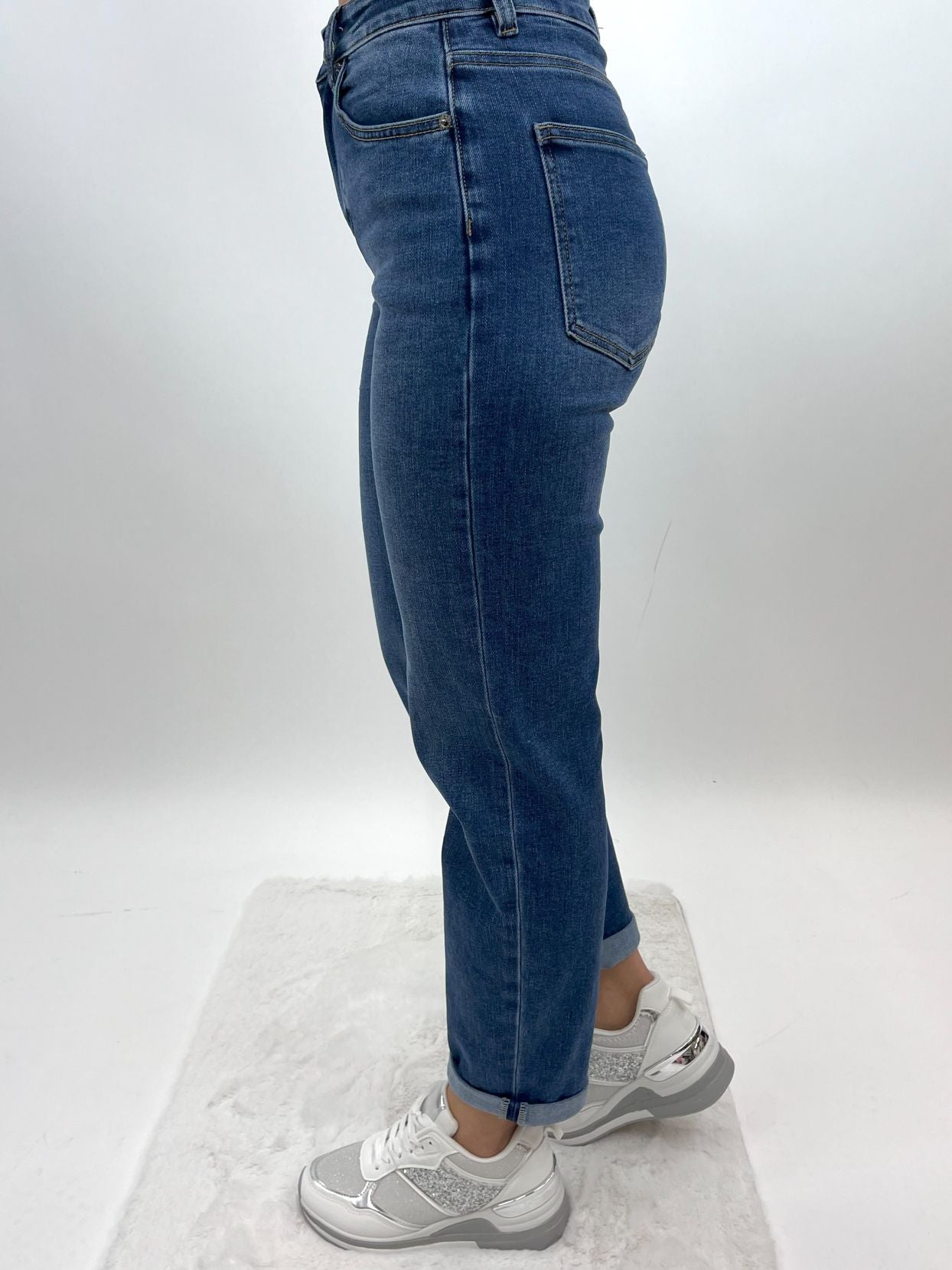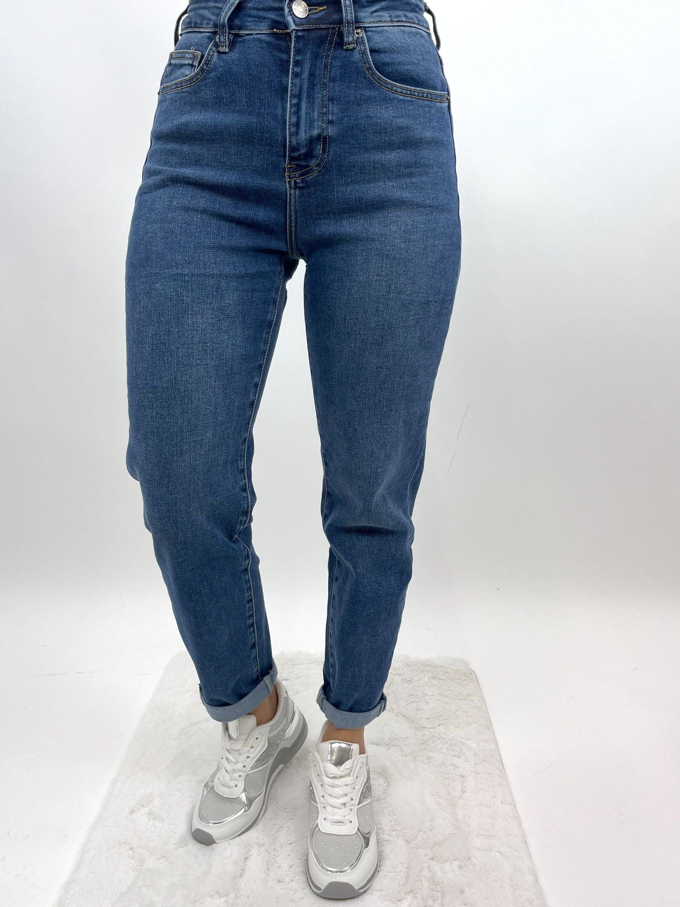 Diese zeitlose Mom Jeans in klassischem Blau ist der perfekte Allrounder für deinen Kleiderschrank. Der hoch geschnittene Bund betont die Taille, während der gerade, leicht lockere Schnitt für ein angenehmes Tragegefühl sorgt. Das elastische Denim-Material bietet Bewegungsfreiheit und Komfort im Alltag.