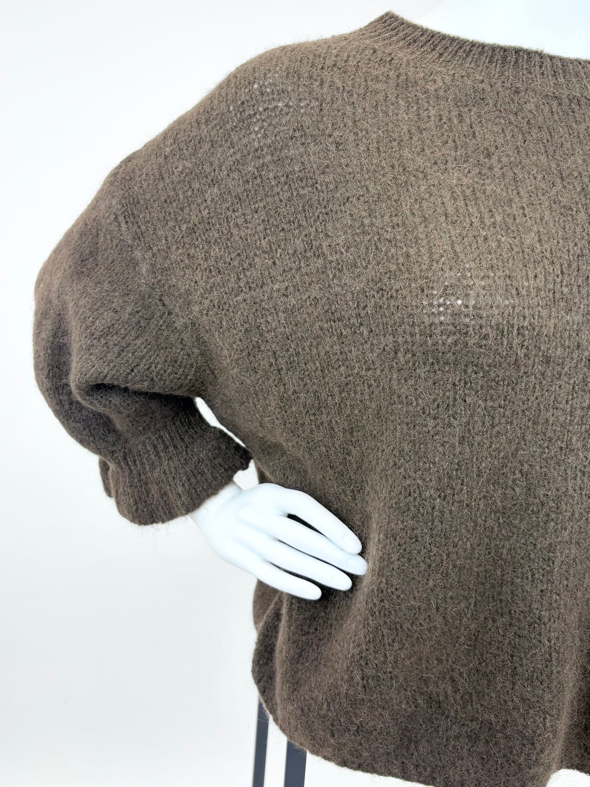 Sein weiches, flauschiges Strickmaterial sorgt für ein angenehm wärmendes Tragegefühl, während der lockere Schnitt und die leicht überschnittenen Schultern für eine moderne, entspannte Silhouette sorgen. Die Bündchen an den Ärmeln geben dem Pullover eine dezente Form, ohne den gemütlichen Look zu verlieren.