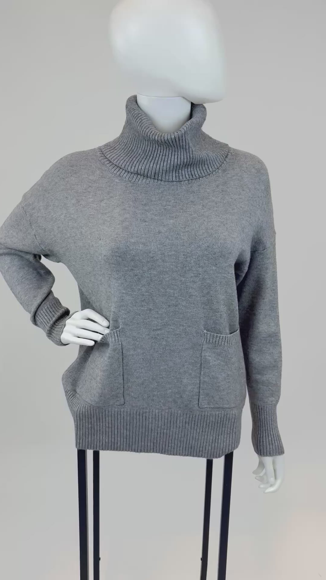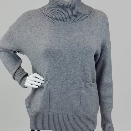 Strickpullover in Grau mit Schalkragen und Taschen , Gr. 36-42