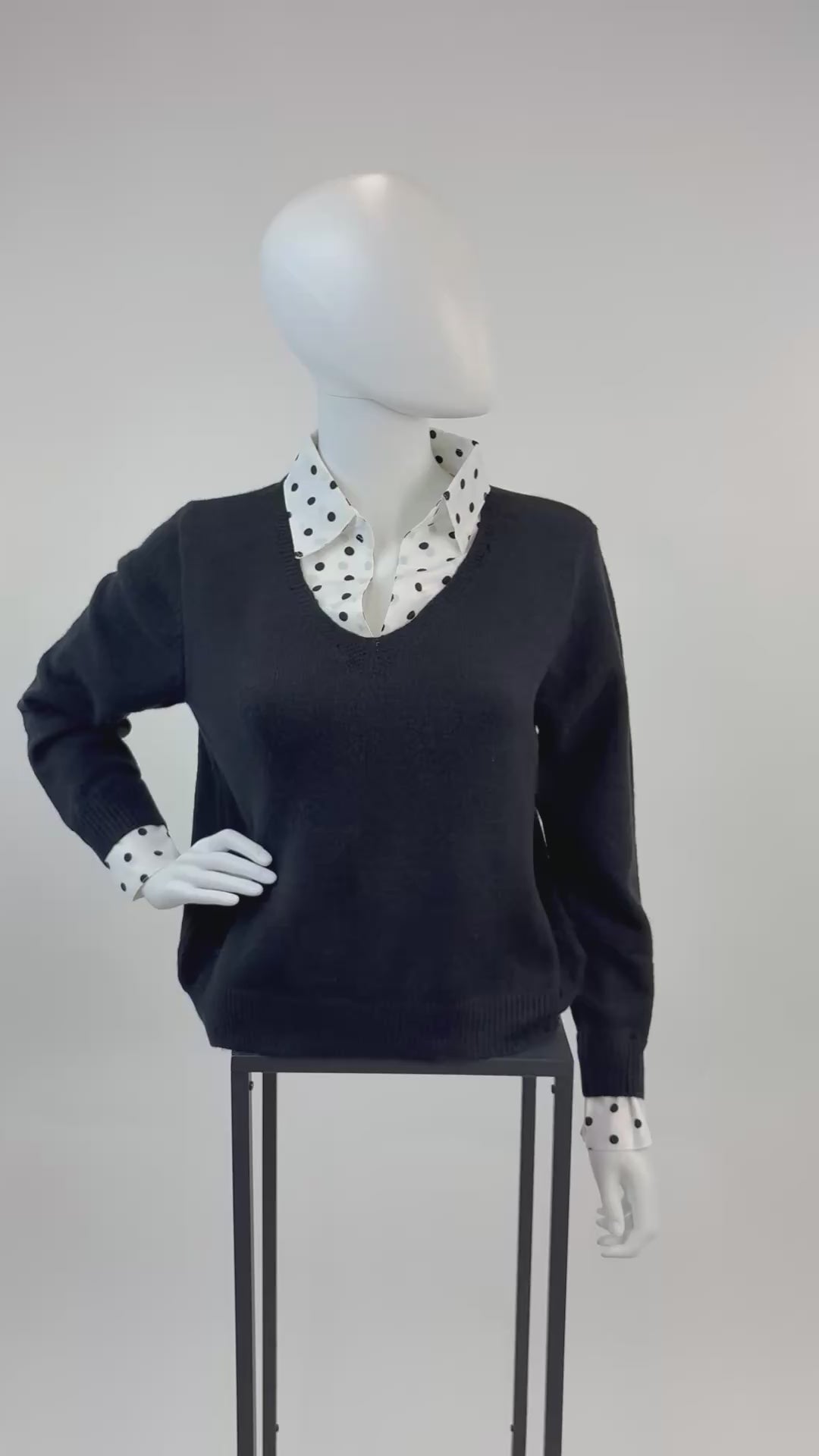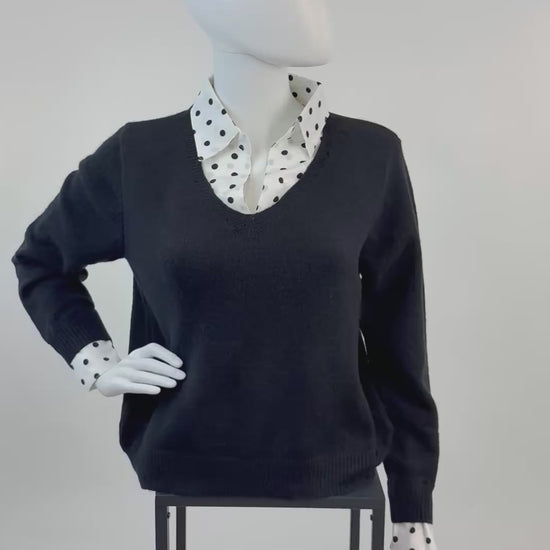 Pullover mit Polka-Dot Blusenkragen schwarz, Gr. 36-42