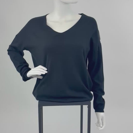 Pullover V-Ausschnitt schwarz, Gr. 38-46