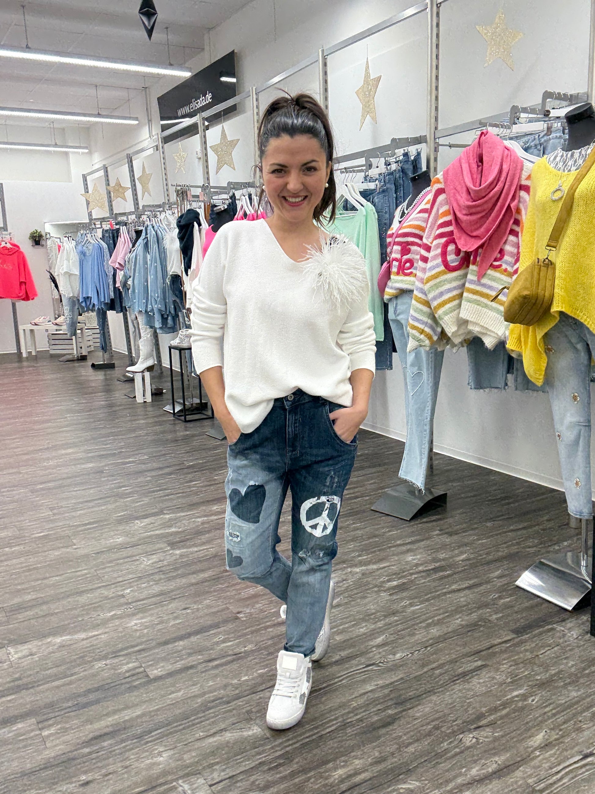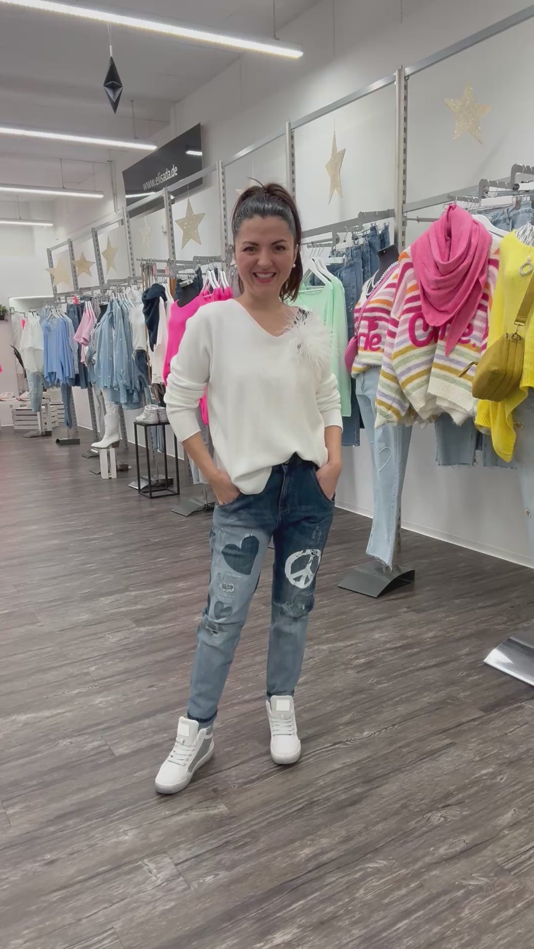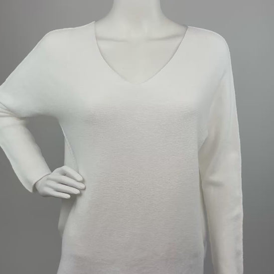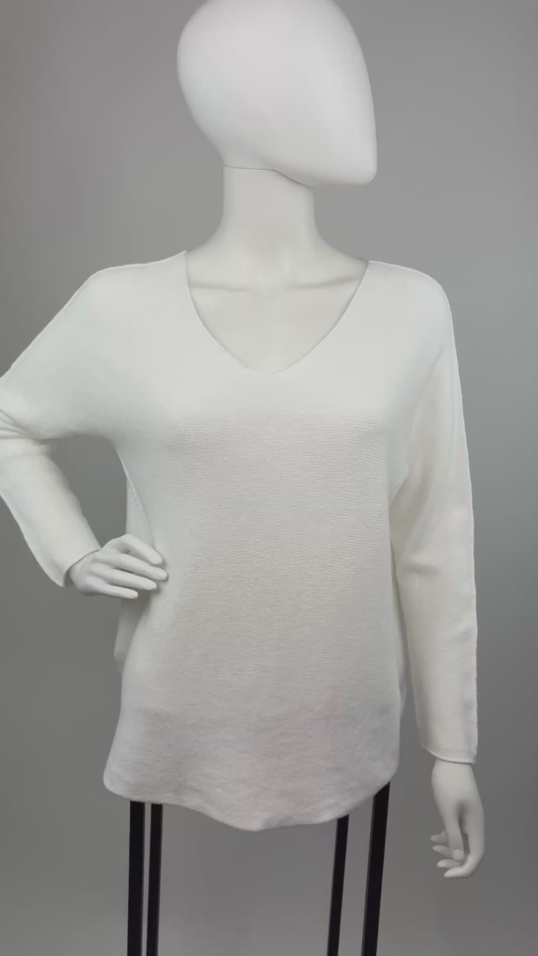 Pullover V-Ausschnitt weiß, Gr. 36-42