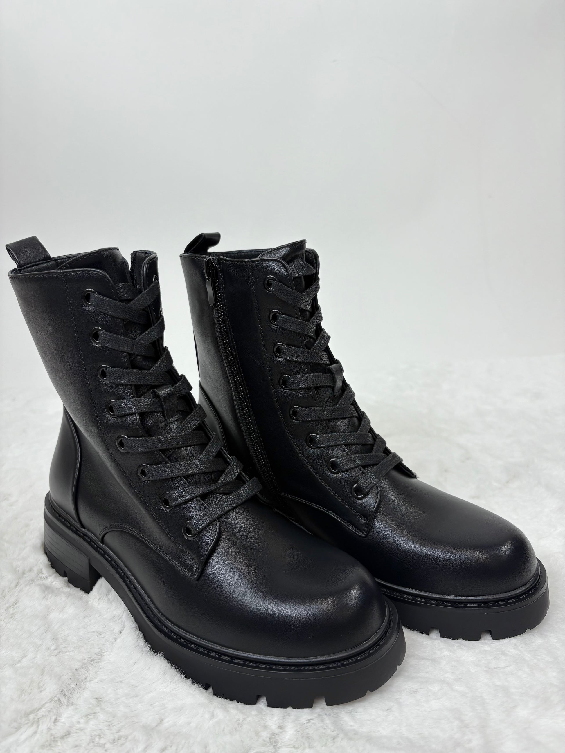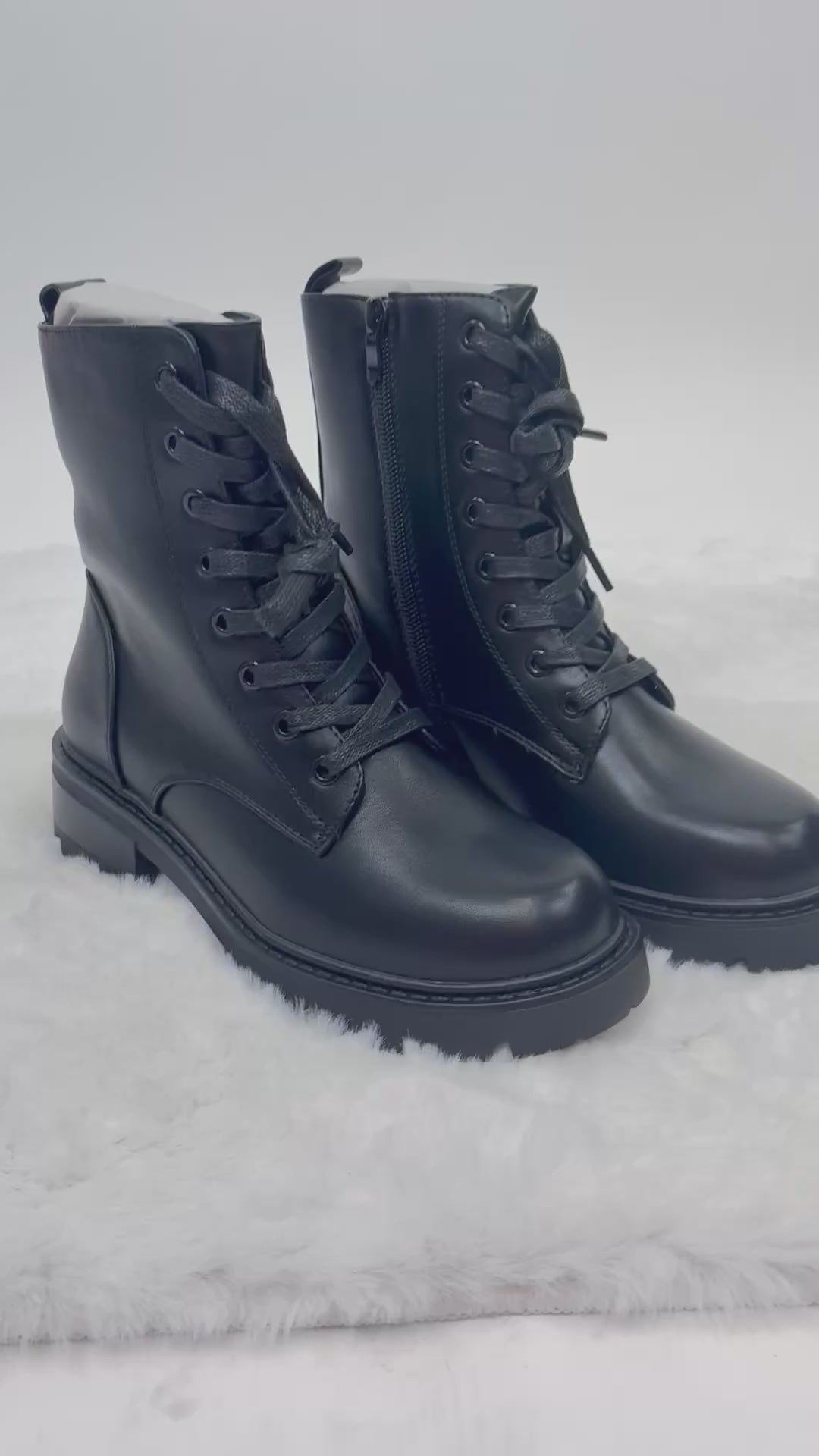 Dieser Schnür-Boot in einem Schwarz-Ton ist der perfekte Alltagsbegleiter für Herbst und Winter. Das weiche Obermaterial in Veloursoptik verleiht dem Schuh eine hochwertige, moderne Ausstrahlung, während die stabile Profilsohle für guten Halt sorgt. Dank der Kombination aus Schnürung und praktischem Seitenzipper lässt sich der Boot leicht an- und ausziehen und gleichzeitig perfekt an den Fuß anpassen. Die dekorativen Nähte und der blockige Absatz runden das Design stilvoll ab. Innen gefüttert.