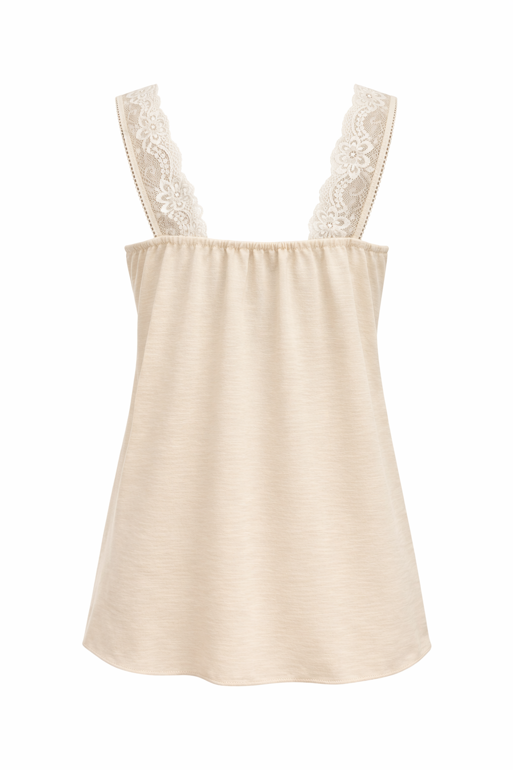 Dieses ärmellose Top überzeugt mit einer weich fließenden Silhouette und einem femininen V-Ausschnitt, der das Dekolleté dezent betont. Die locker fallende Passform sorgt für ein angenehmes Tragegefühl, während feine Spitzendetails an Ausschnitt und Trägern dem Design eine elegante, feminine Note verleihen. Der integrierte Gummizug im Rücken passt sich dem Körper optimal an und bietet zusätzlichen Komfort sowie einen schönen Sitz – ganz ohne Einengen.