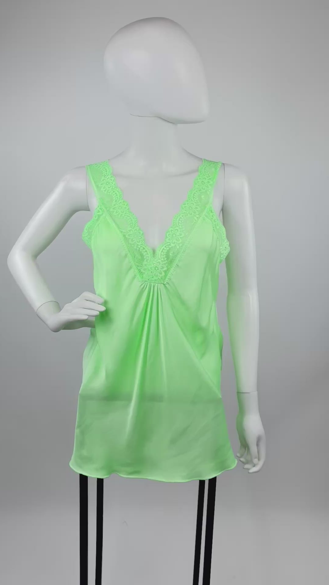 Ein Hauch von Eleganz, dieses zarte Top in neongrün verleiht jedem Look eine feminine Note. Der tiefe V-Ausschnitt ist mit feiner Spitze verziert und betont das Dekolleté auf stilvolle Weise. Das leichte, fließende Material sorgt für hohen Tragekomfort und eine schmeichelnde Passform.