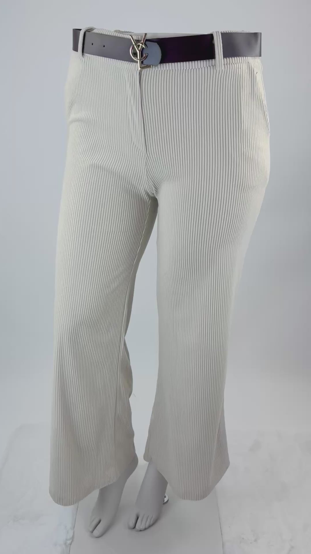 Diese stilvolle Hose aus feinem, schmal geripptem Cord überzeugt mit einem modernen, weit ausgestellten Bein und einem angenehm weichen Material. Der klassische Beige-Ton lässt sich vielseitig kombinieren und verleiht jedem Outfit eine natürliche, elegante Note.