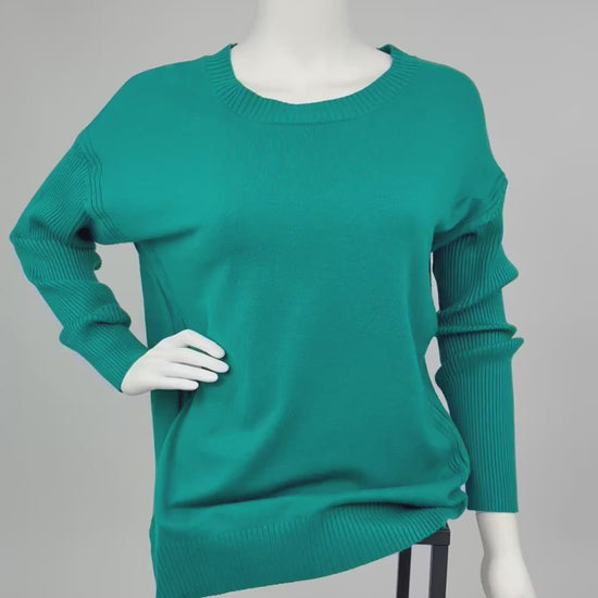 Dieser leichte Strickpullover bringt Farbe in deinen Alltag. Das schlichte Design mit Rundhalsausschnitt und feinen Ripp-Details an Kragen, Ärmeln und Saum macht ihn vielseitig kombinierbar.