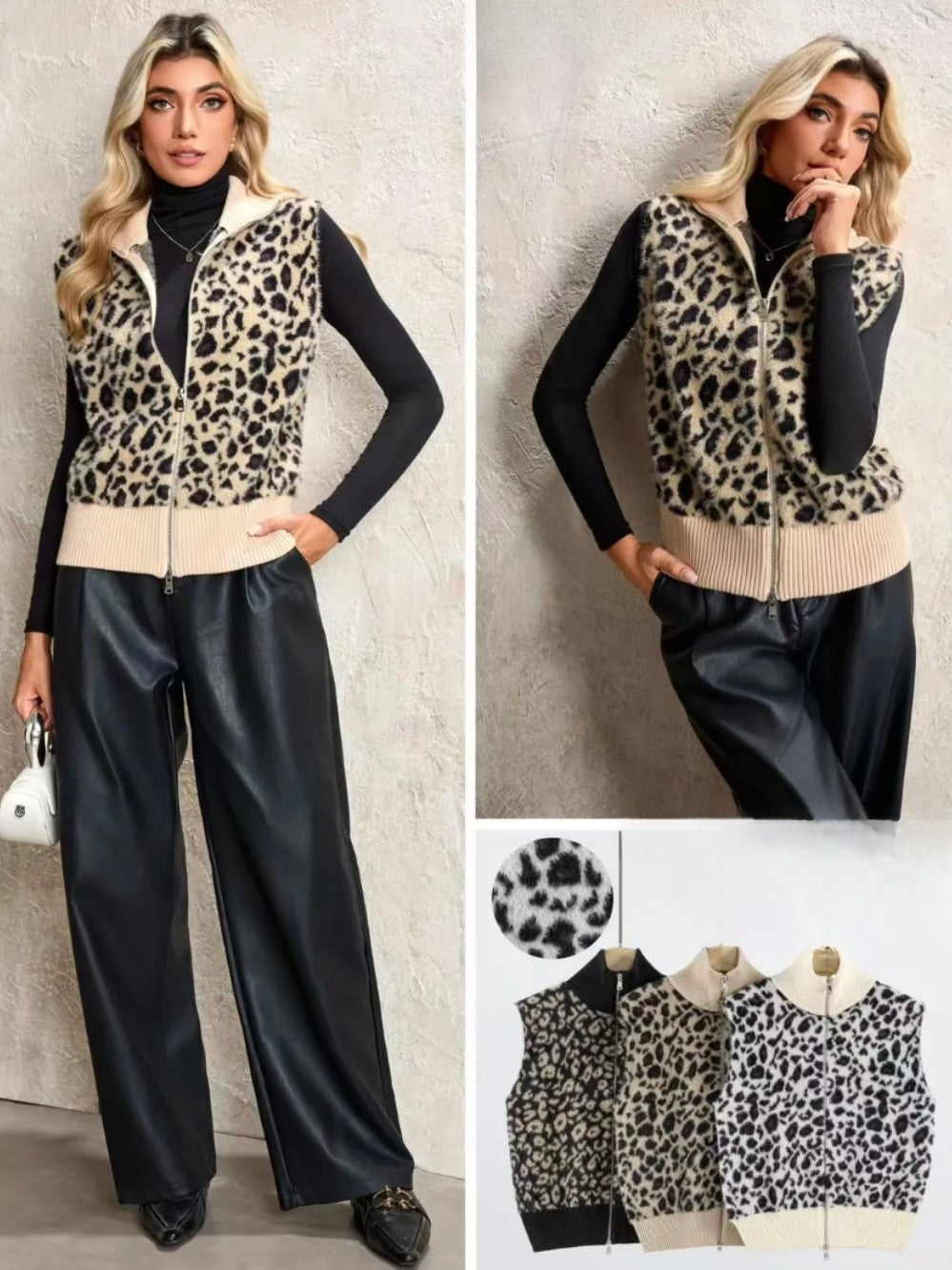 Diese stylische Strickweste mit trendigem Leopardenmuster ist ein echter Hingucker und perfekt für modebewusste Frauen. Das kuschelige Material sorgt für Komfort, während der Reißverschluss und die gerippten Saumabschlüsse einen modernen Look verleihen. Ob zu Jeans, Lederhosen oder Röcken – diese Weste bringt Abwechslung in jedes Outfit und lässt sich vielseitig kombinieren. Figurbetont geschnitten.