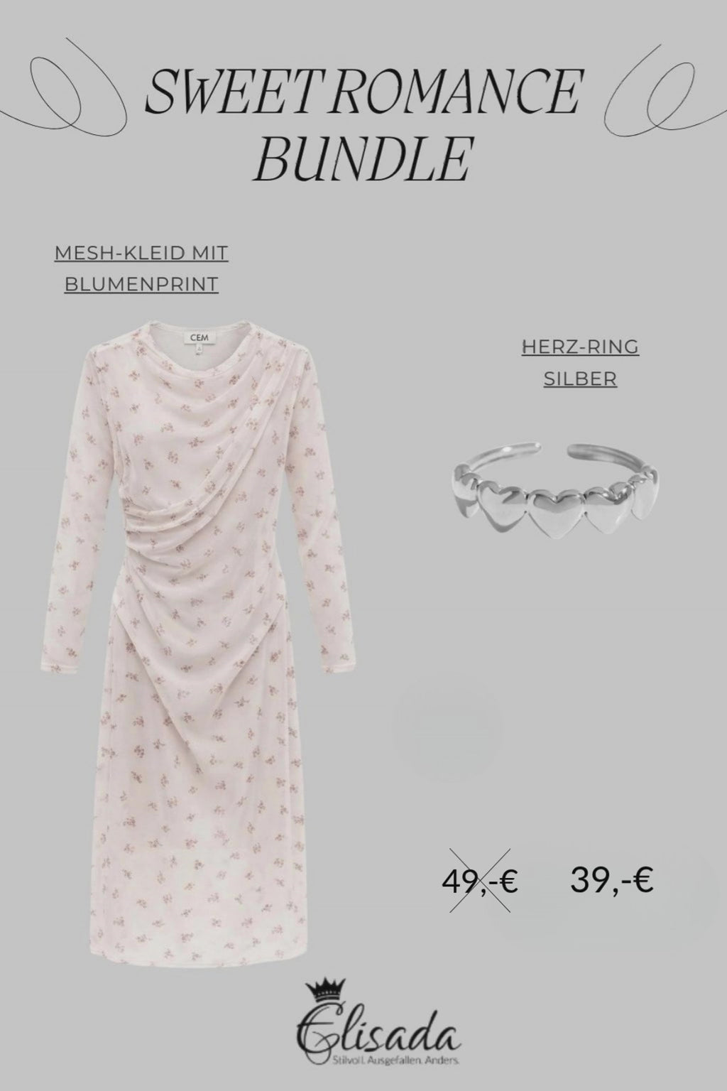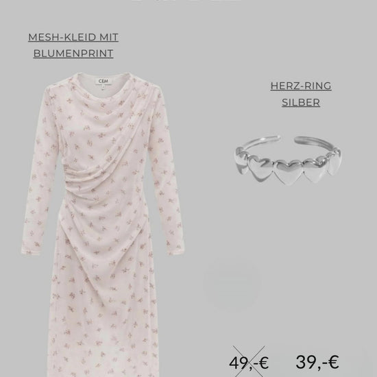 • Romantisches Bundle aus floralem Kleid und elegantem Herzring