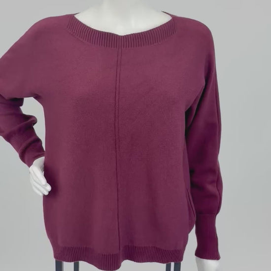 Feinstrickpullover mit Ziernaht bordeaux, Gr. 36-42