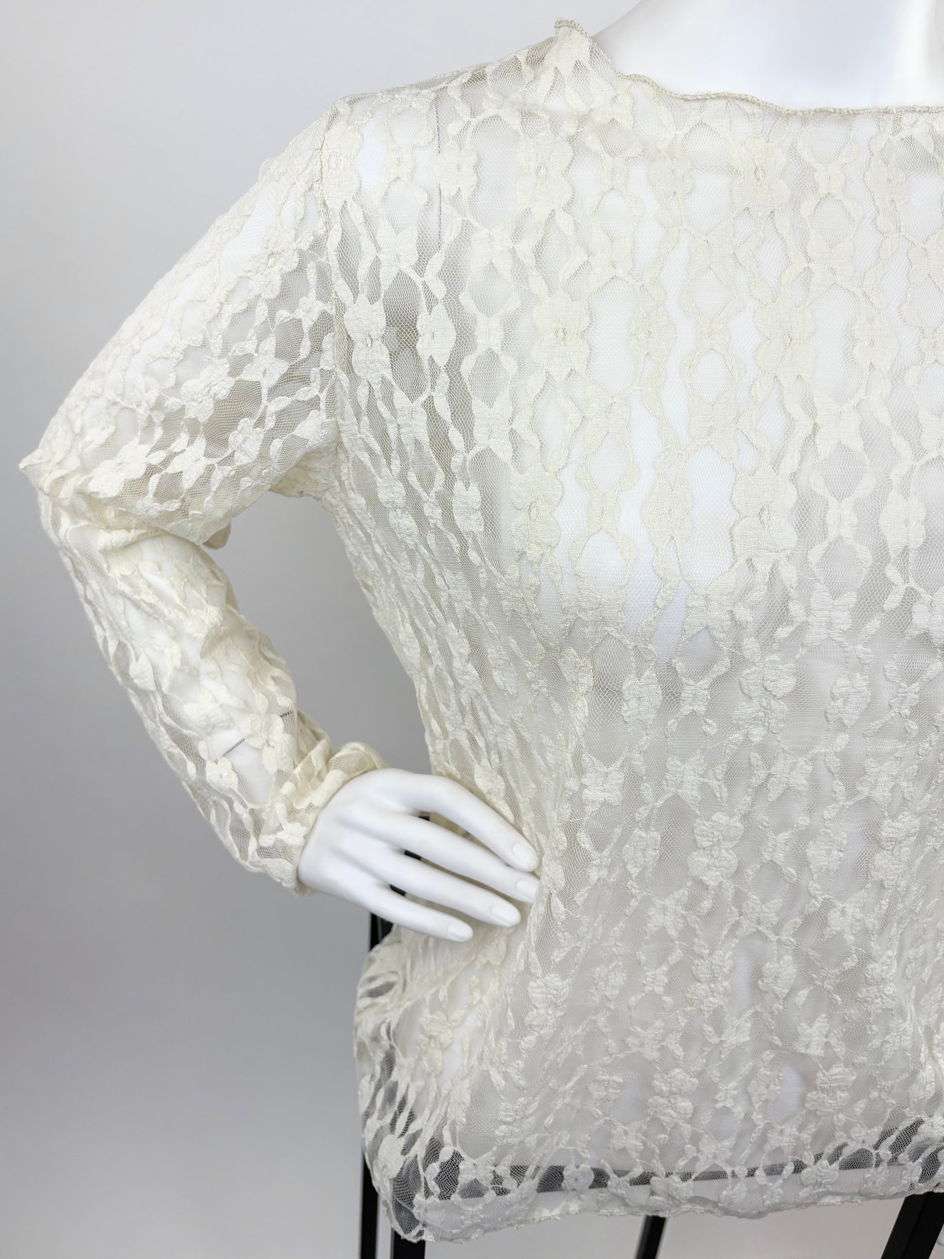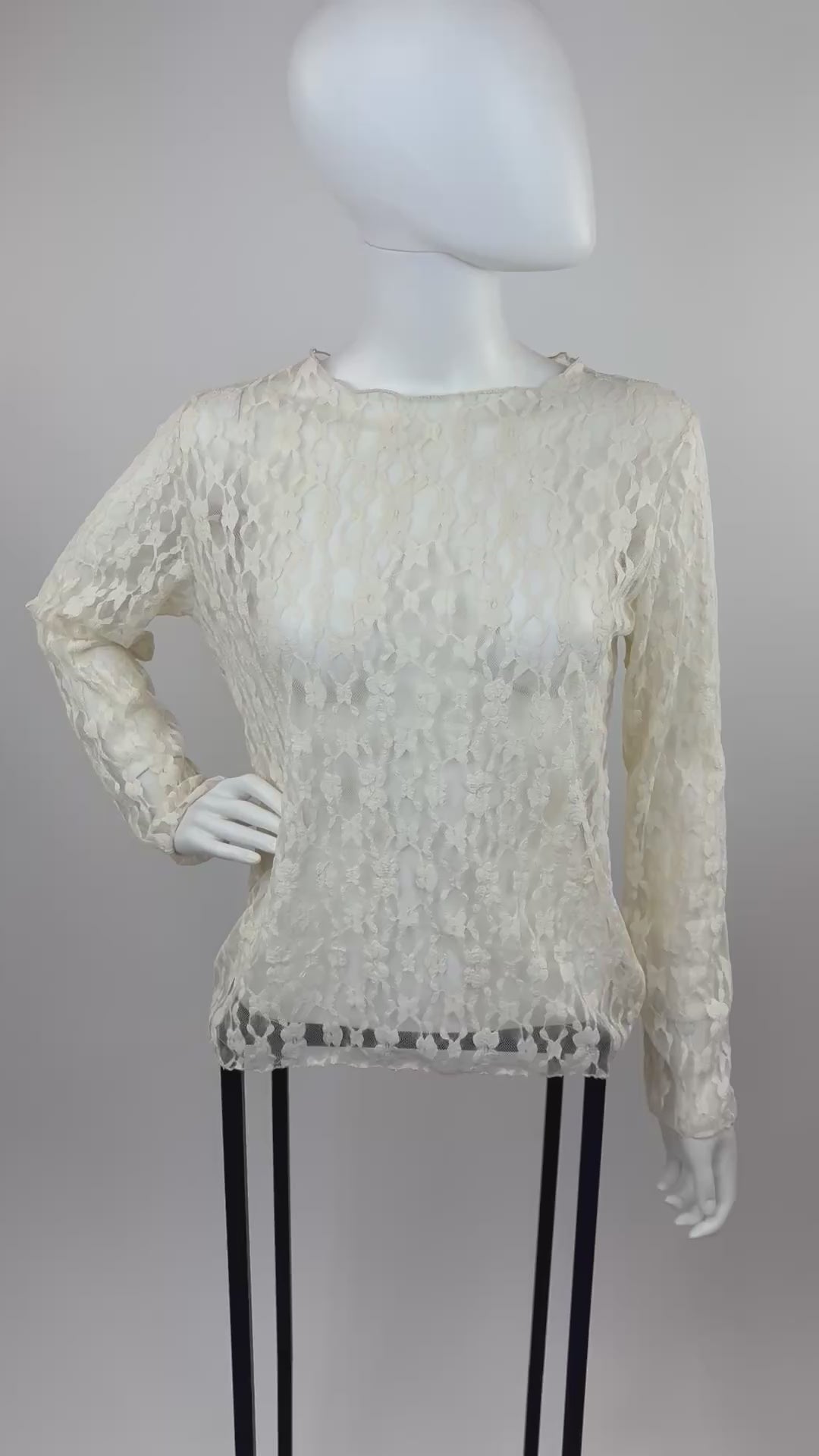 Dieses langärmlige Unterziehshirt ist die perfekte Kombination aus Eleganz und Vielseitigkeit. Das fein gearbeitete, transparente Spitzenmaterial schmiegt sich figurbetont an den Körper an und sorgt für eine feminine, moderne Silhouette. Durch den schlichten Rundhalsausschnitt lässt sich das Shirt ideal unter Blazern, Westen, Kleidern oder Strickteilen tragen, kann aber auch solo als modisches Statement gestylt werden. Der leichte, elastische Stoff bietet angenehmen Tragekomfort und macht das Shirt zum idealen Begleiter für Layering-Looks – sowohl im Alltag als auch zu besonderen Anlässen.